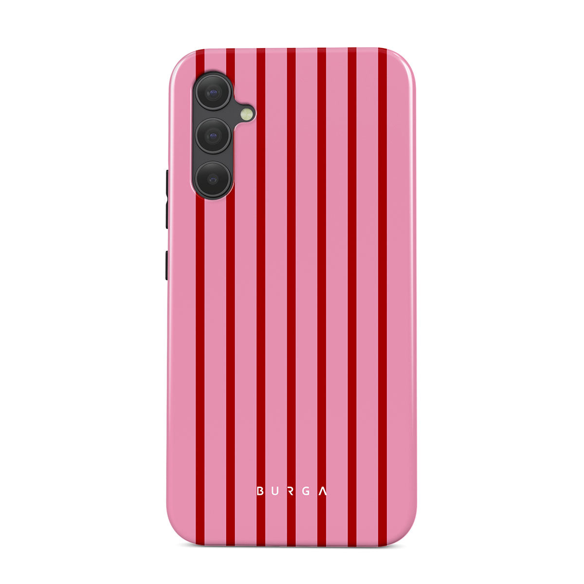 Step right up to the sweet charm of our Favorite Bikini Samsung Galaxy A34 phone case design. This vibrant array of pink and magenta stripes evokes memories of summer funfairs and whimsical candy canes.