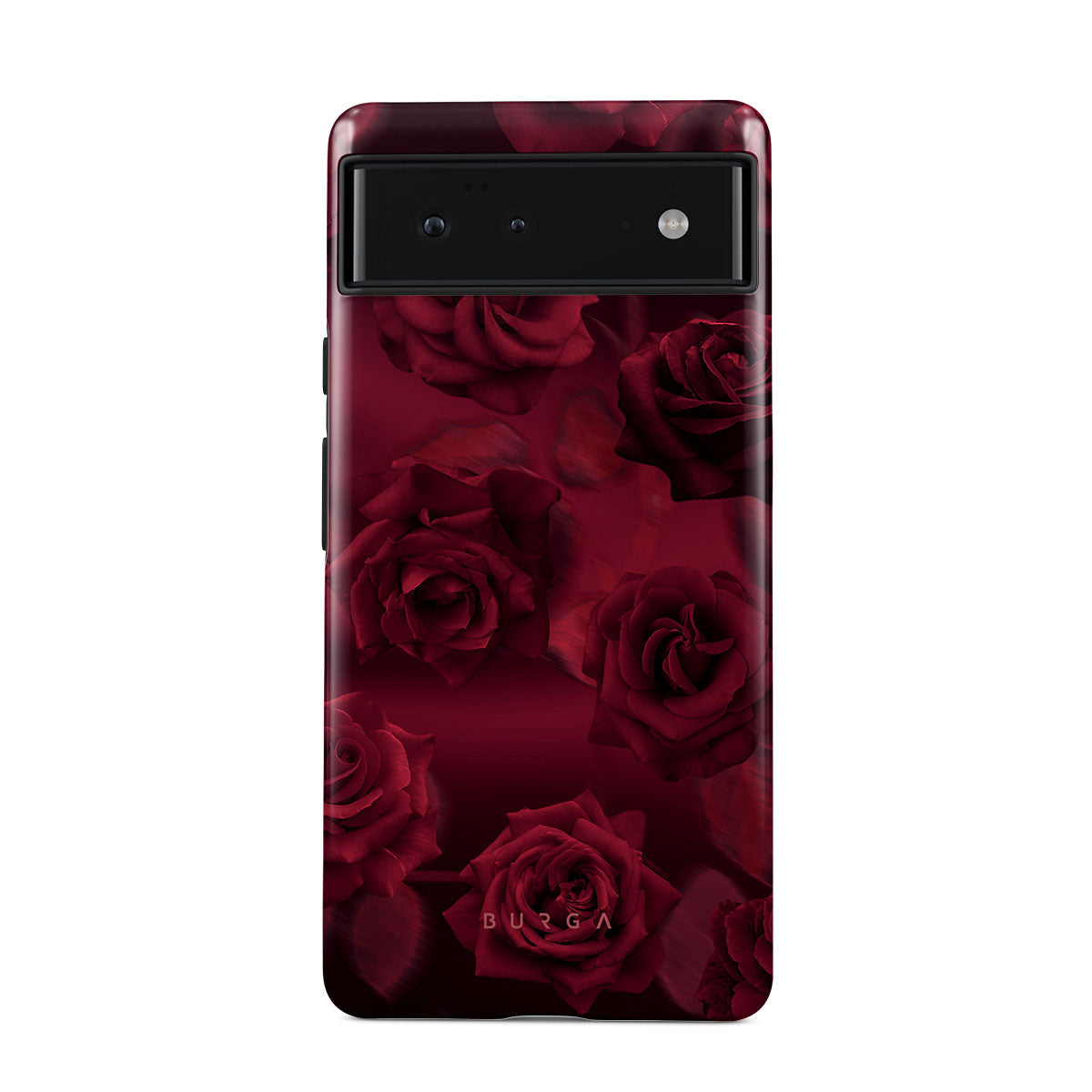 Dive into our intriguing Femme Fatale Google Pixel 6 phone case design. These deep red roses aren't just flowers—they're silent confessions of candlelit romance and moments caught in stolen glances. Crafted for those who captivate at every turn.