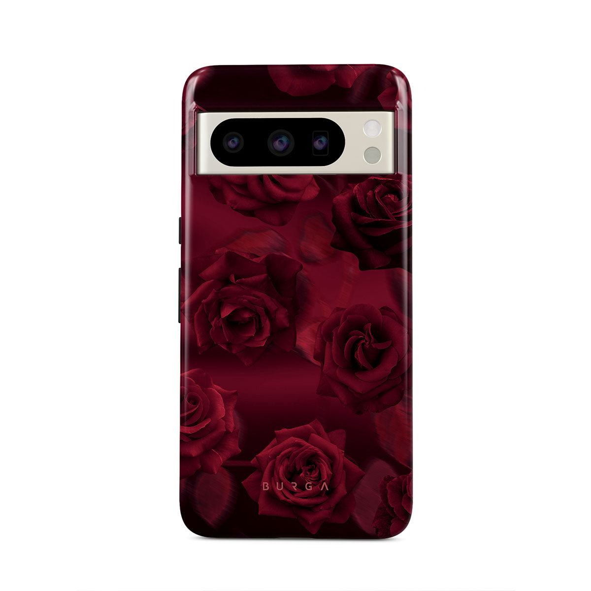 Dive into our intriguing Femme Fatale Google Pixel 8 Pro phone case design. These deep red roses aren't just flowers—they're silent confessions of candlelit romance and moments caught in stolen glances. Crafted for those who captivate at every turn.