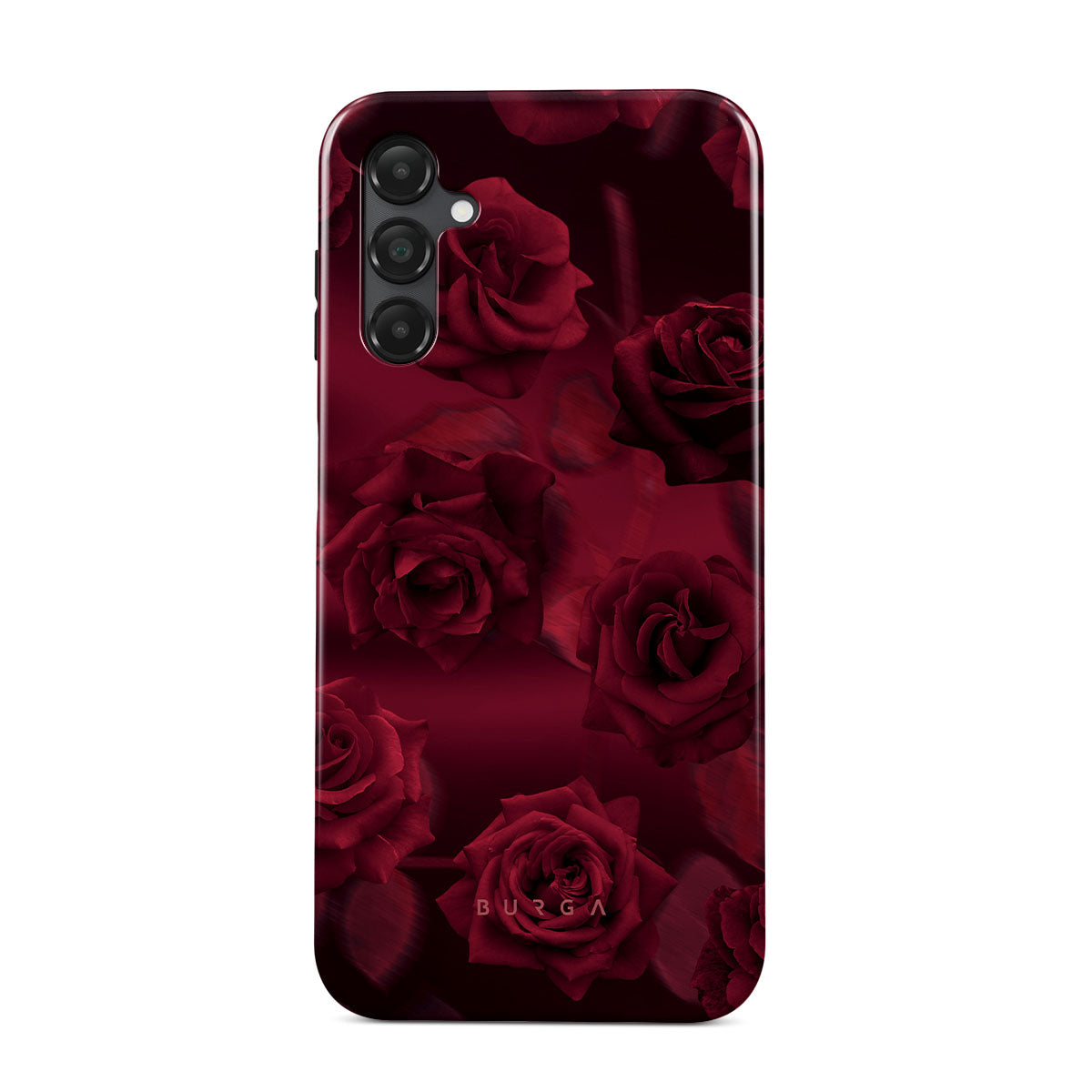 Dive into our intriguing Femme Fatale Samsung Galaxy A14 5G phone case design. These deep red roses aren't just flowers—they're silent confessions of candlelit romance and moments caught in stolen glances. Crafted for those who captivate at every turn.