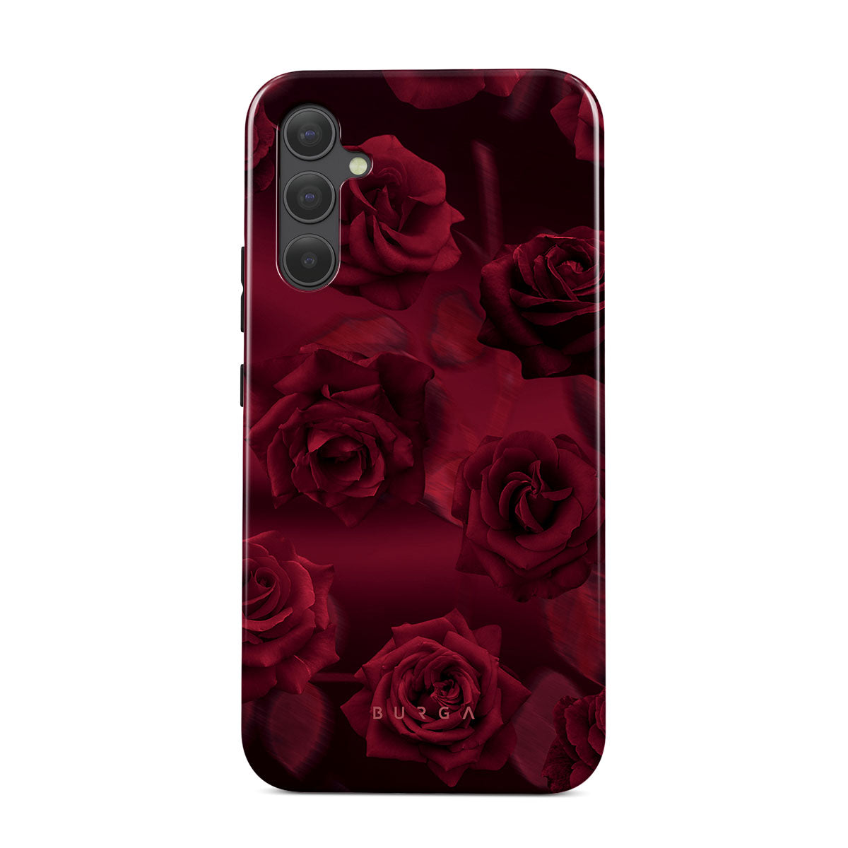 Dive into our intriguing Femme Fatale Samsung Galaxy A34 phone case design. These deep red roses aren't just flowers—they're silent confessions of candlelit romance and moments caught in stolen glances. Crafted for those who captivate at every turn.