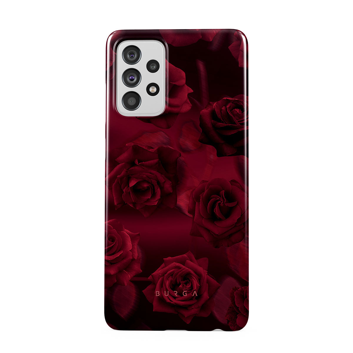 Dive into our intriguing Femme Fatale Samsung Galaxy A72 4G / 5G phone case design. These deep red roses aren't just flowers—they're silent confessions of candlelit romance and moments caught in stolen glances. Crafted for those who captivate at every turn.