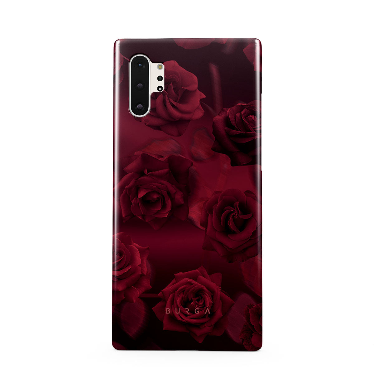 Dive into our intriguing Femme Fatale Samsung Galaxy Note 10 Plus phone case design. These deep red roses aren't just flowers—they're silent confessions of candlelit romance and moments caught in stolen glances. Crafted for those who captivate at every turn.