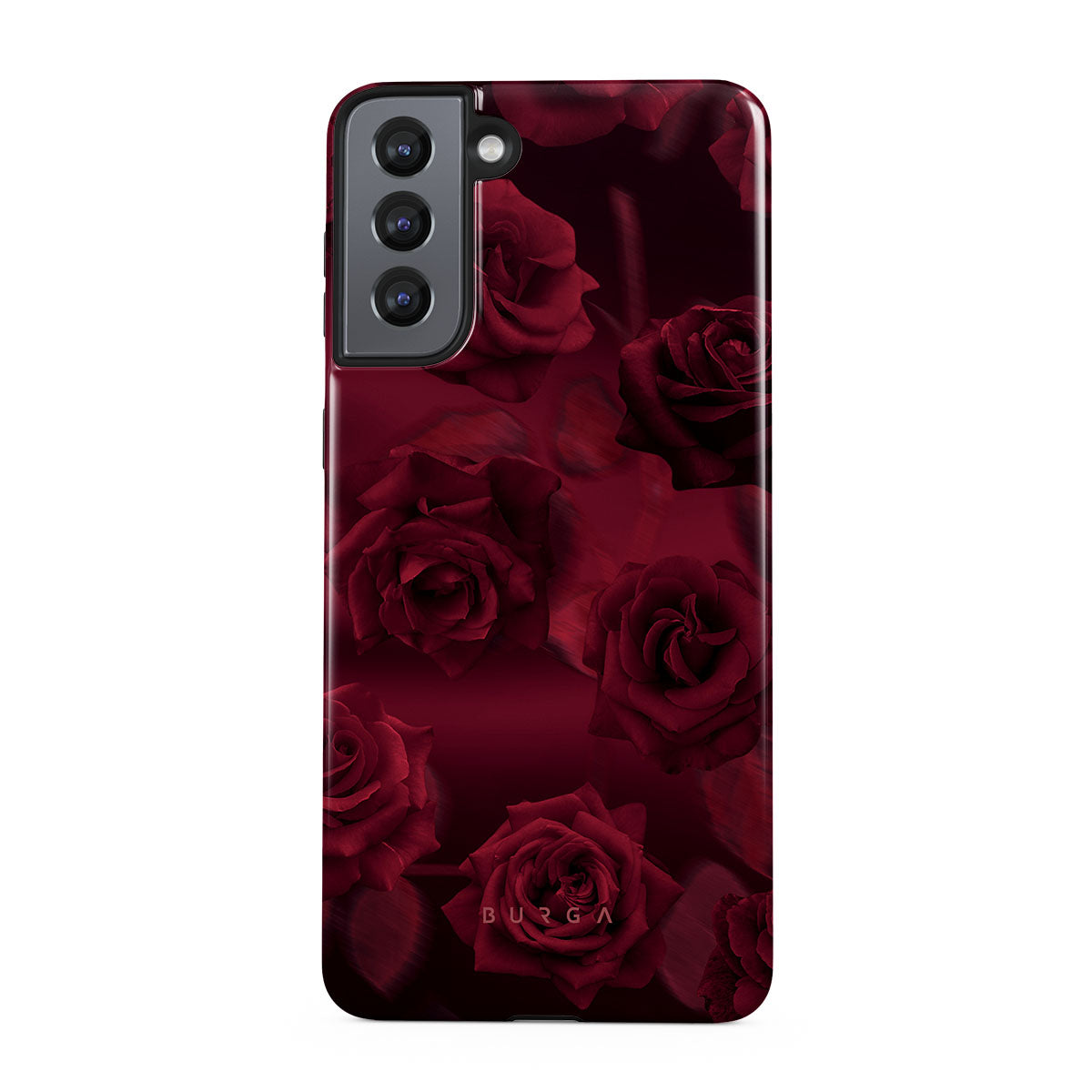 Dive into our intriguing Femme Fatale Samsung Galaxy S21 phone case design. These deep red roses aren't just flowers—they're silent confessions of candlelit romance and moments caught in stolen glances. Crafted for those who captivate at every turn.