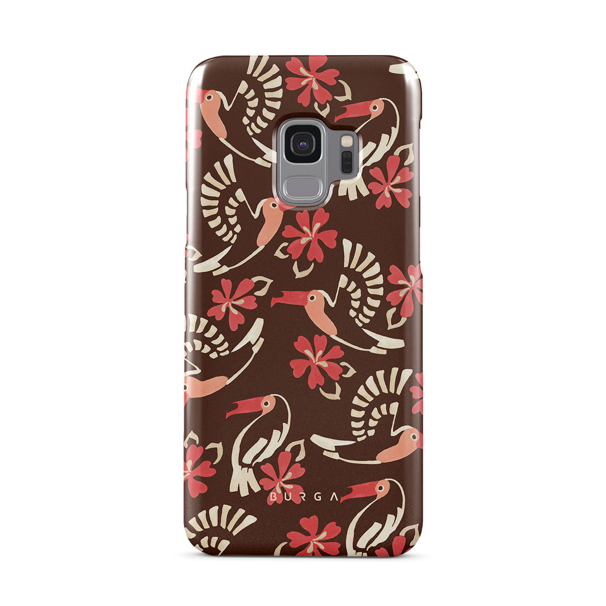 A jungle rave. Parrots, florals, bursts of red and cream—like someone threw a party in the rainforest and forgot to send you the invite. This Samsung Galaxy S9 phone case design is your RSVP.
