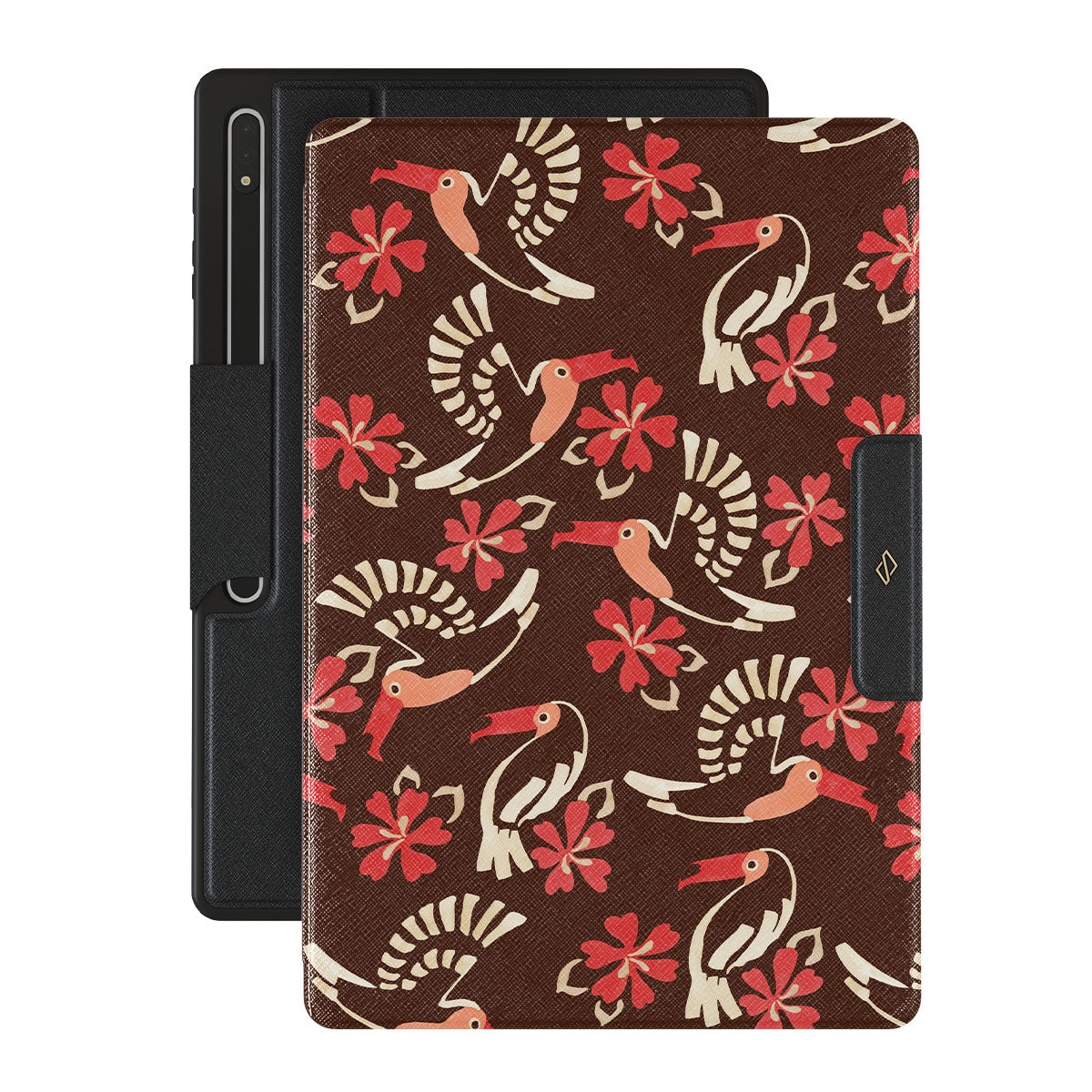 A jungle rave. Parrots, florals, bursts of red and cream—like someone threw a party in the rainforest and forgot to send you the invite. This Samsung Galaxy Tab S8 Ultra design is your RSVP.