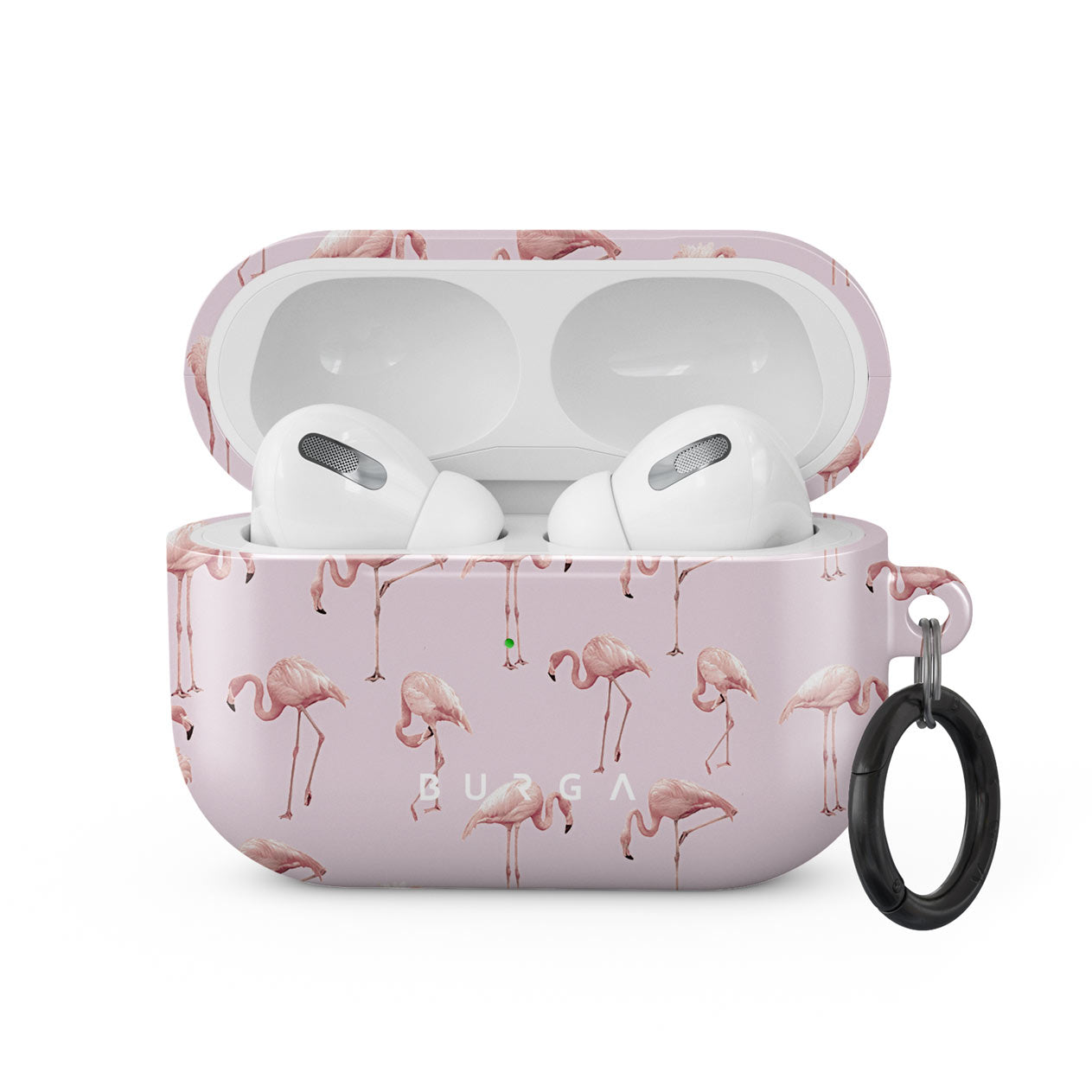 Nostalgic Pink Apple Airpods Pro case cover combines baby pink and playful flamingos pattern into a unique creation. The designer case will add a touch of playfulness to your style and will quickly turn a plain case into an accessory you must have. Our case fits perfectly snug around Apple Airpods Pro . “Like a glove!” one might say. And it won’t disrupt the wireless charging capabilities of the newer model. There’s even an LED light indicator to prove it (don’t worry, wired charging still works, too). When fitted, the BURGA case will protect the delicate Apple Airpods Pro case beneath it from scratches, bumps, and drops while remaining scratch-free itself. Our signature design pattern prints are High Quality, and will never peel or fade away- thanks to our unique printing technology. And finally, a handy carabiner is there to make your life easier and more convenient: just snap it around your keys or belt loop and tackle the day head-on. Your music is right there by your side when you need it.