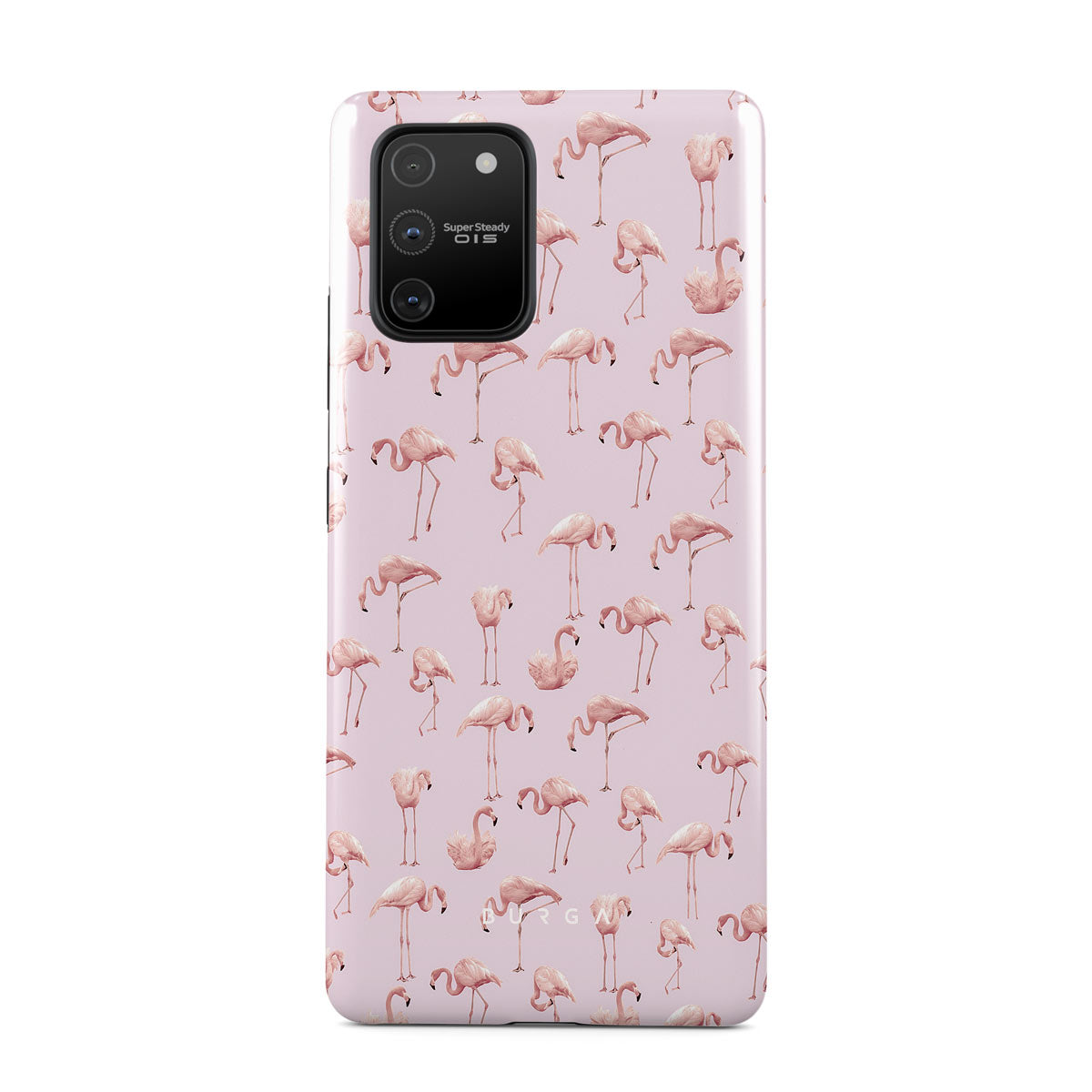 With our Nostalgic Pink Samsung Galaxy S10 Lite phone case cover, you can have a chic pink flamingos pattern combined with a pretty pink background. Add a modern art feel to your phone. No one said that a protective phone case needs to be boring.