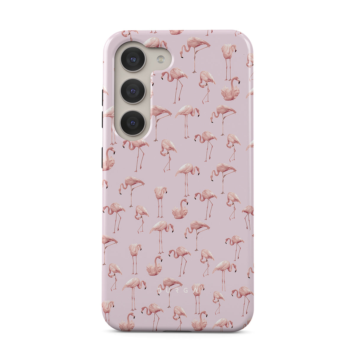 With our Nostalgic Pink Samsung Galaxy S23 phone case cover, you can have a chic pink flamingos pattern combined with a pretty pink background. Add a modern art feel to your phone. No one said that a protective phone case needs to be boring.