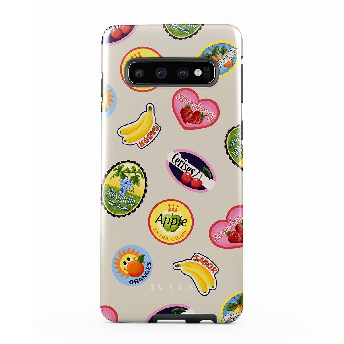 This Samsung Galaxy S10 4G Case phone case design is all the juicy, Mediterranean feels you crave. Wear it like you’re chasing the sunset while barefoot on a hot beach road. You’ve got the vibe—now own it. This design features: bananas, stamps, cherries, apples, oranges, strawberry, bright colors, citrus accents, fruit motifs, tropical patternsThe case is glossy. No signs of looking like it's printed on. If you think it's like from aliexpress you're wrong. Excellent quality. Would recommend and worth the price. Quick shipping. Got mine in about 7 days from ordering.