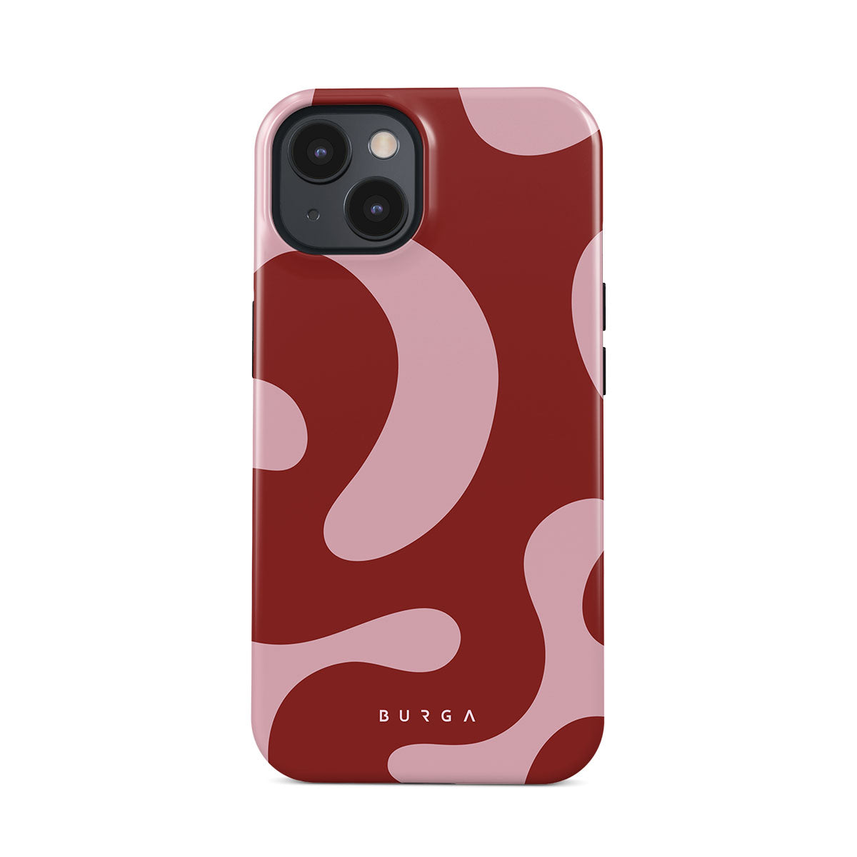 This design features: waves, abstract pattern, dark red swirls, pink swirls.