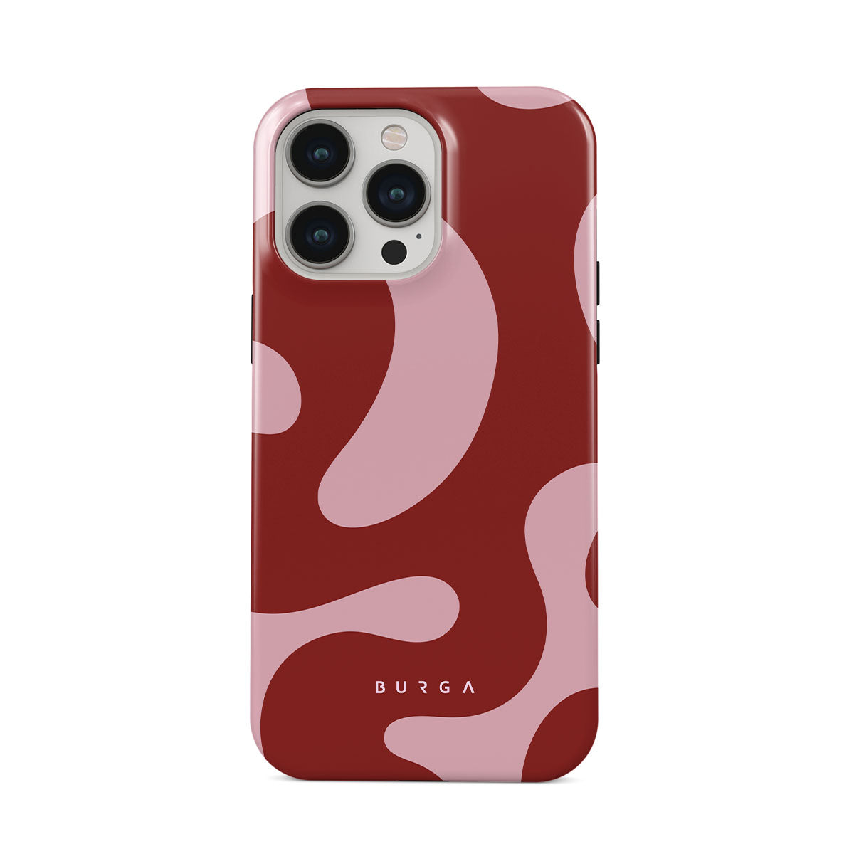 This design features: waves, abstract pattern, dark red swirls, pink swirls.