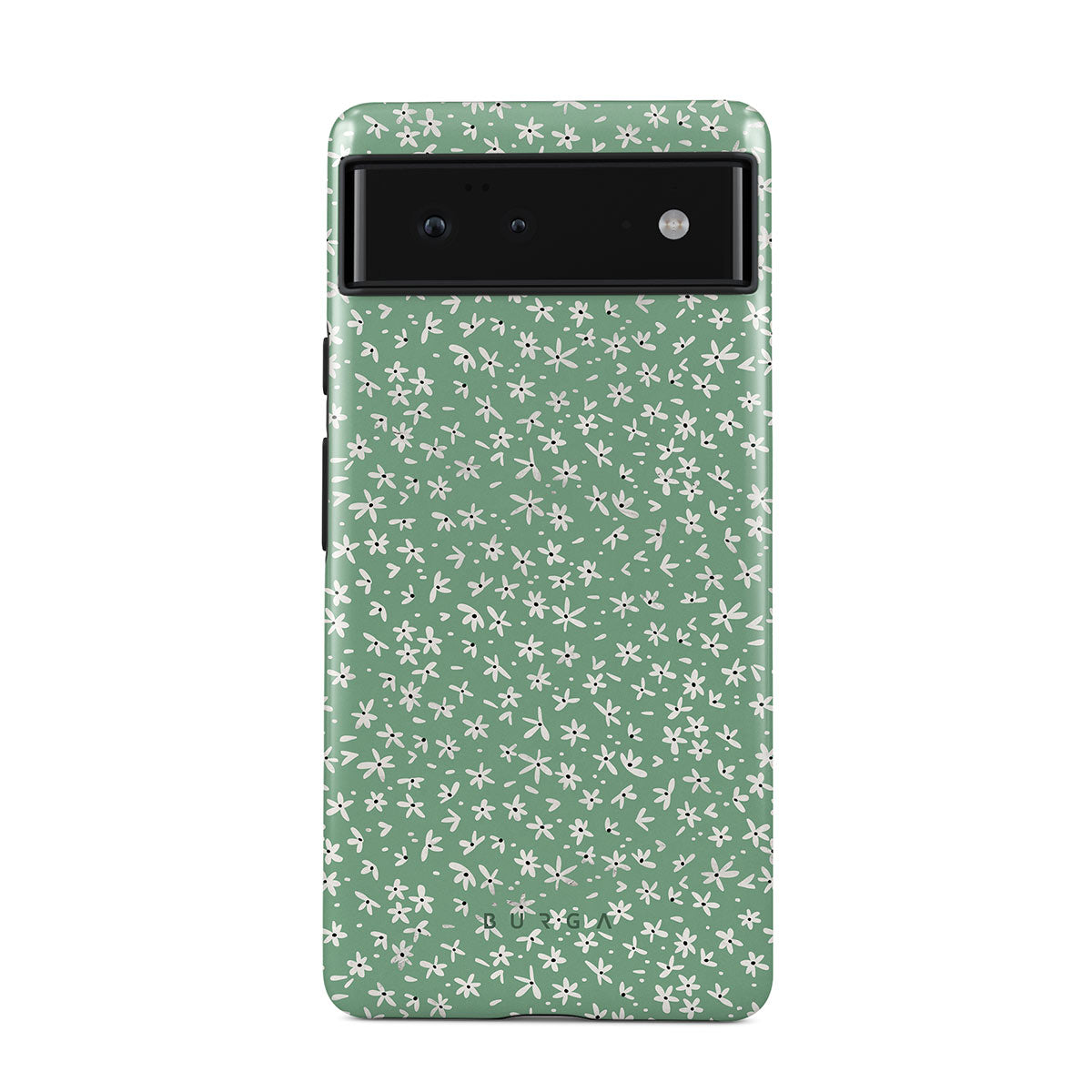 Our minimalistic floral Lush Meadows Google Pixel 6a phone case is inspired by the green fields covered in petite and dainty flowers. The soft green phone case with a delicate floral pattern creates a perfect feminine design that will fit every occasion.