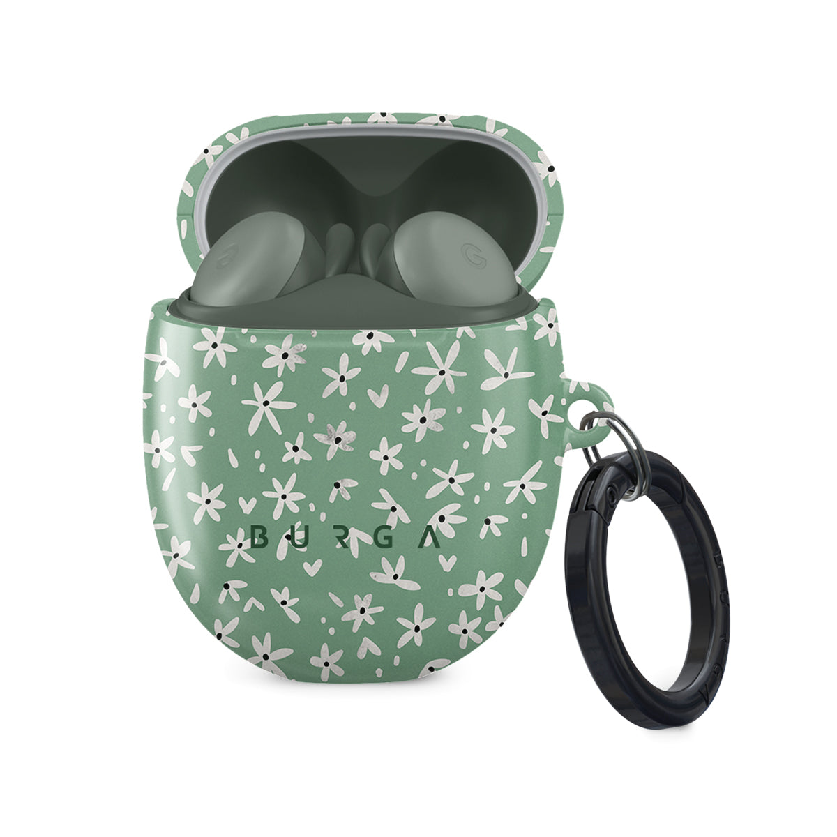 Our minimalistic Lush Meadows floral Google Pixel Buds A case cover is inspired by the green fields and petite flowers that can be found there. A delicate floral pattern found on the case will not only look good but will also keep your Google Pixel Buds A safe. Our case fits perfectly snug around Google Pixel Buds A . “Like a glove!” one might say. And it won’t disrupt the wireless charging capabilities of the newer model. There’s even an LED light indicator to prove it (don’t worry, wired charging still works, too). When fitted, the BURGA case will protect the delicate Google Pixel Buds A case beneath it from scratches, bumps, and drops while remaining scratch-free itself. Our signature design pattern prints are High Quality, and will never peel or fade away- thanks to our unique printing technology. And finally, a handy carabiner is there to make your life easier and more convenient: just snap it around your keys or belt loop and tackle the day head-on. Your music is right there by your side when you need it.
