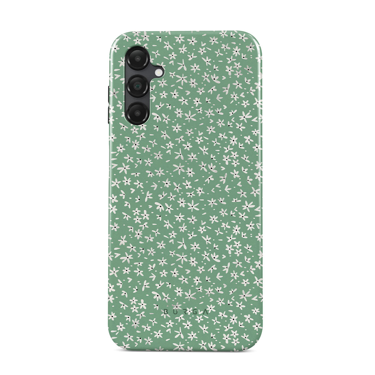 Our minimalistic floral Lush Meadows Samsung Galaxy A25 phone case is inspired by the green fields covered in petite and dainty flowers. The soft green phone case with a delicate floral pattern creates a perfect feminine design that will fit every occasion.