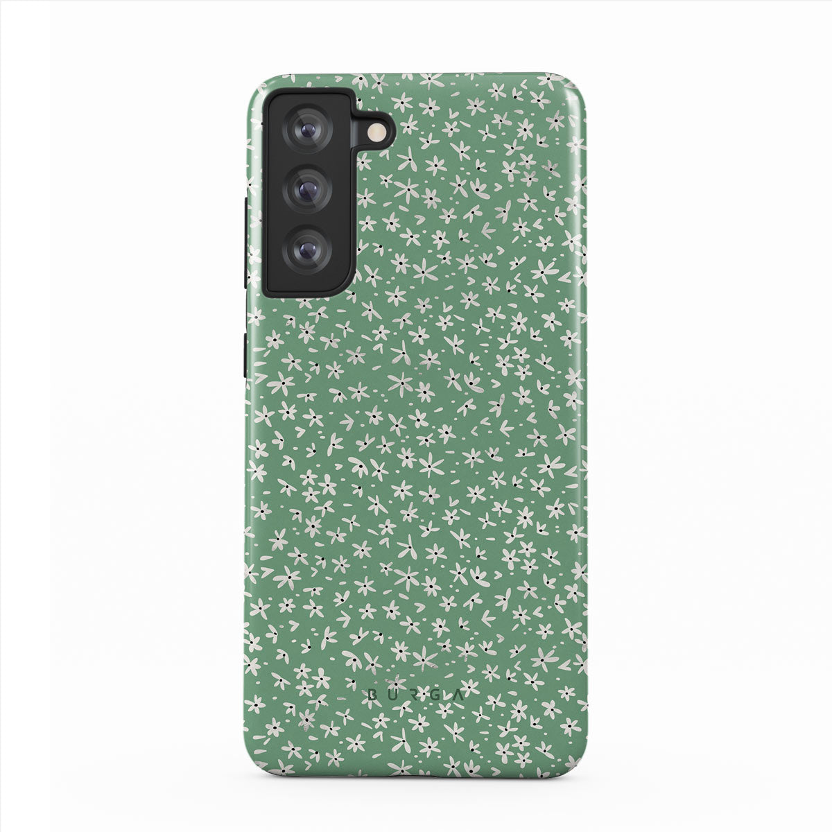 Our minimalistic floral Lush Meadows Samsung Galaxy S21 FE phone case is inspired by the green fields covered in petite and dainty flowers. The soft green phone case with a delicate floral pattern creates a perfect feminine design that will fit every occasion.
