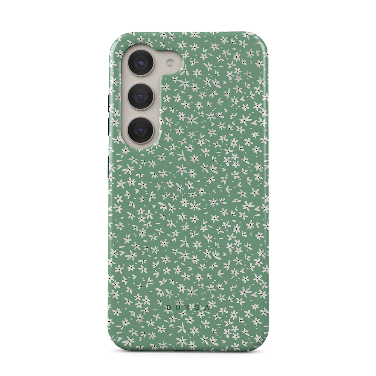 Our minimalistic floral Lush Meadows Samsung Galaxy S23 Plus phone case is inspired by the green fields covered in petite and dainty flowers. The soft green phone case with a delicate floral pattern creates a perfect feminine design that will fit every occasion.