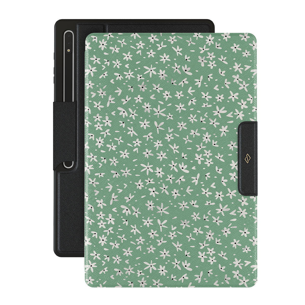 Our minimalistic floral Lush Meadows Samsung Galaxy Tab S10 Ultra folio case is inspired by the green fields covered in petite and dainty flowers. The soft green Galaxy Tab case cover with a delicate floral pattern creates a perfect feminine design that will fit every occasion.