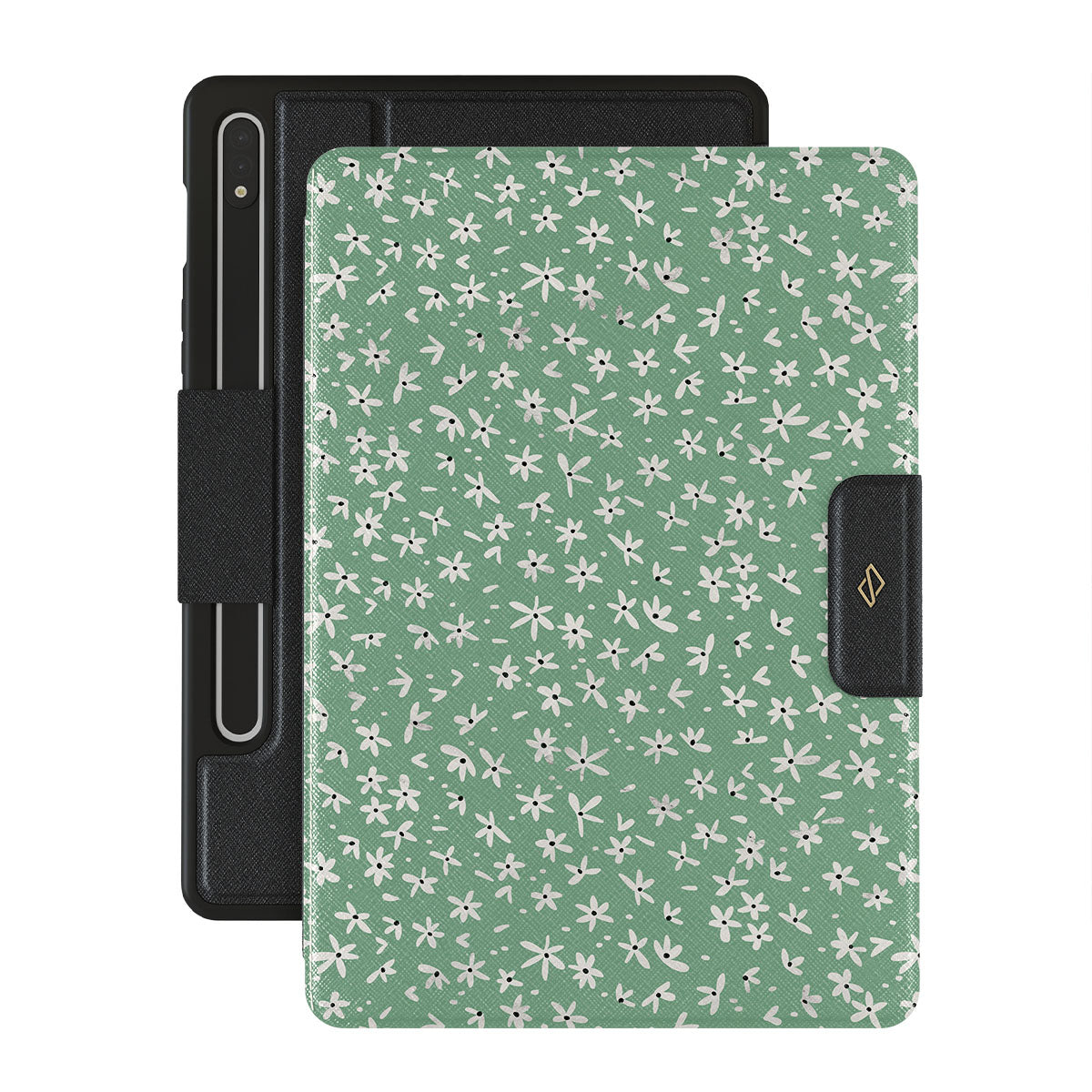 Our minimalistic floral Lush Meadows Samsung Galaxy Tab S9+ folio case is inspired by the green fields covered in petite and dainty flowers. The soft green Galaxy Tab case cover with a delicate floral pattern creates a perfect feminine design that will fit every occasion.