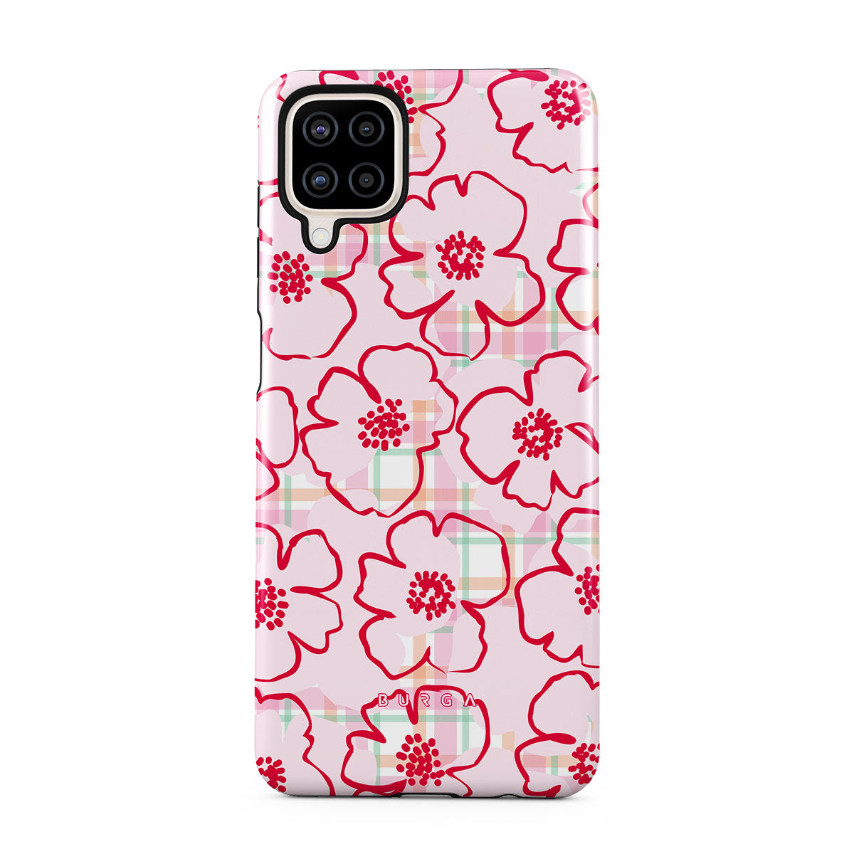 Pink flowers bloom from this Samsung Galaxy A12 4G phone case design—just like the ones you’d pick and put in your hair, simple and pretty, turning every walk through the garden into a fairy tale.