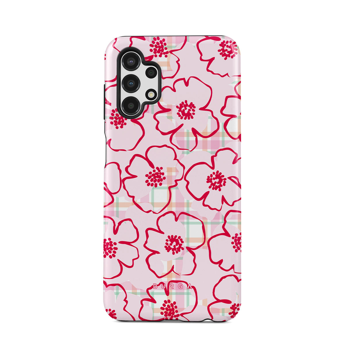 Pink flowers bloom from this Samsung Galaxy A13 4G phone case design—just like the ones you’d pick and put in your hair, simple and pretty, turning every walk through the garden into a fairy tale.