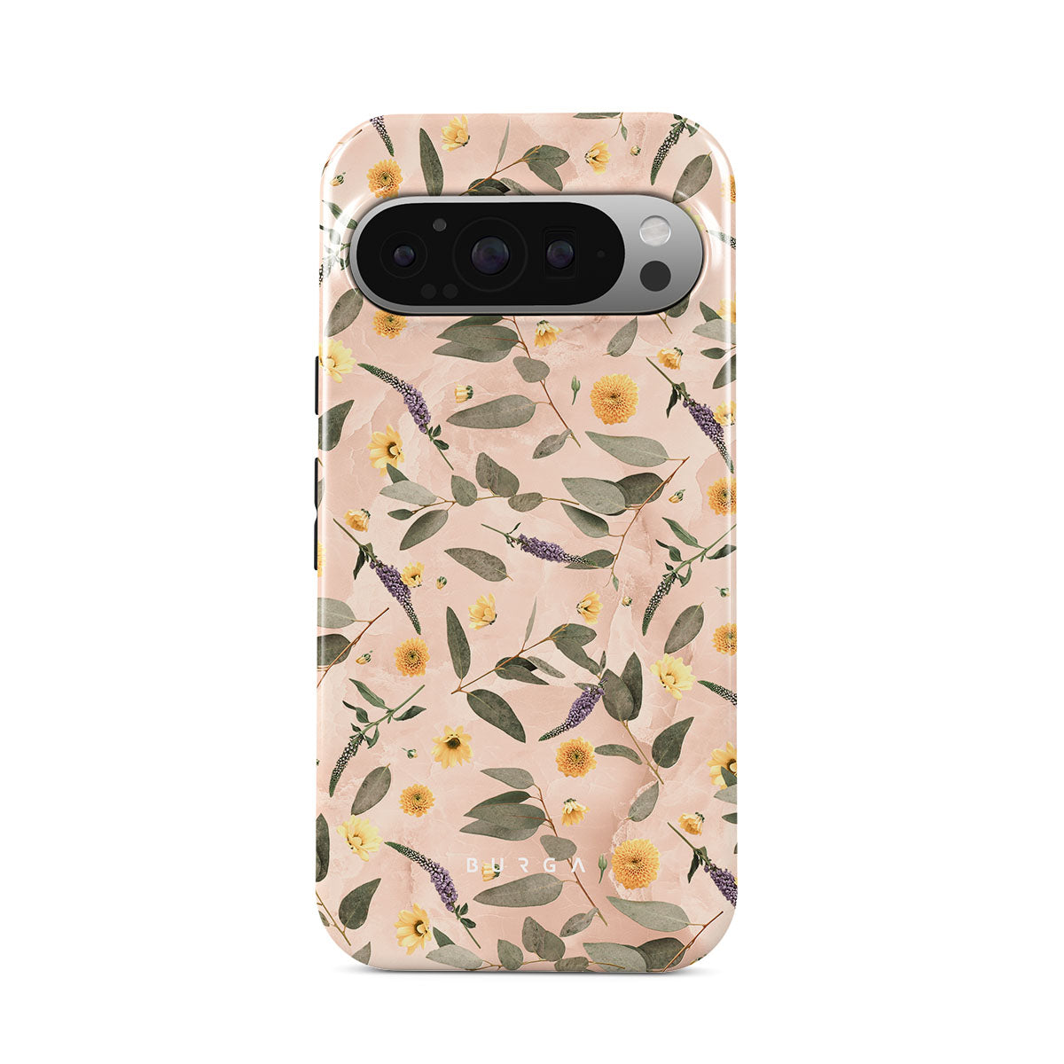 Sunday Brunch Google Pixel 9 Pro phone case features a timeless flower pattern. The soft-toned case with a pop of lavender and yellow colors will add a splash of energy to your style while protecting your phone from dangerous falls.