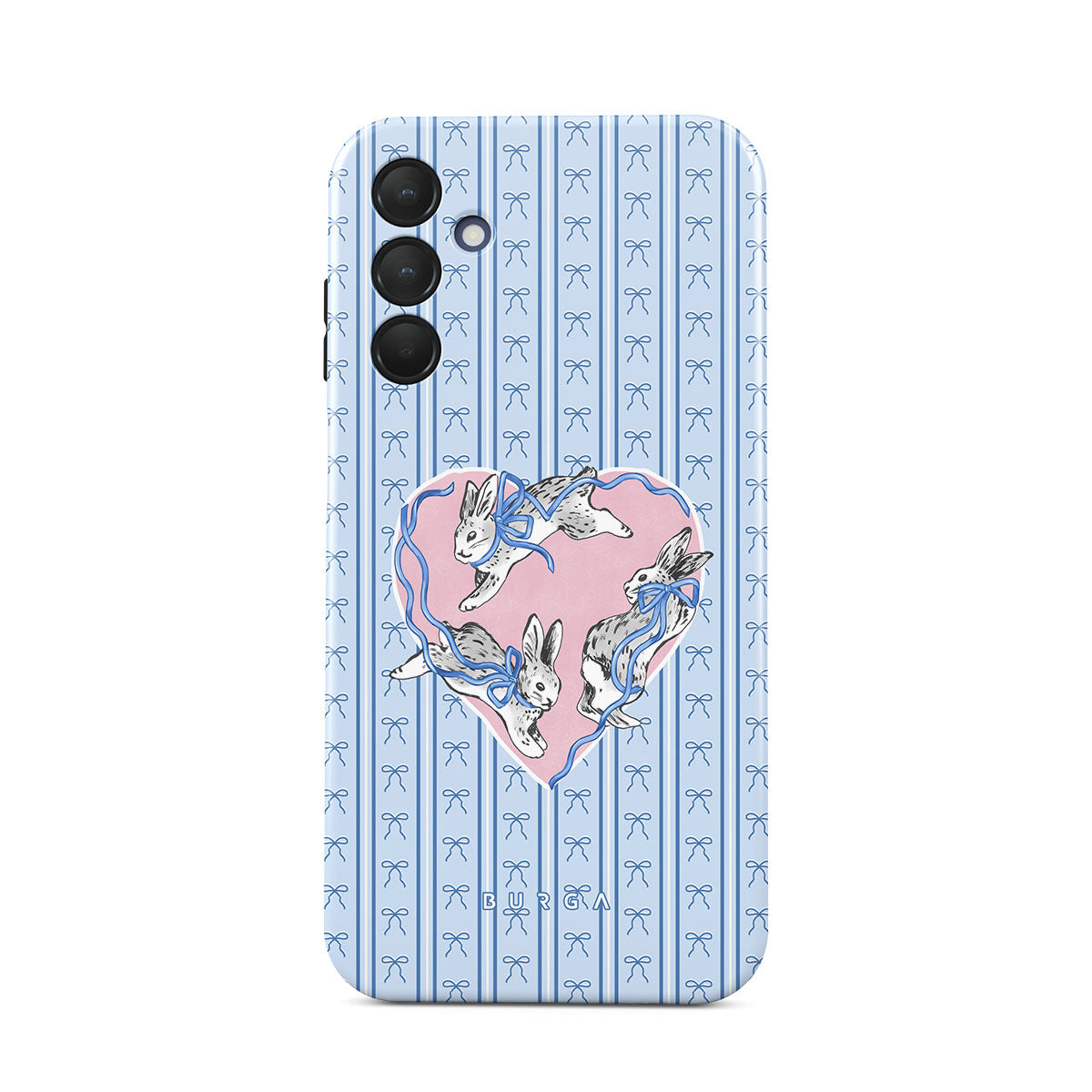 They run, you chase. Or maybe you run, and they chase you. The Follow Me Samsung Galaxy A15 4G / 5G phone case design is an eternal loop—white rabbits tangled in pink ribbons, leading you somewhere unknown. Or maybe, somewhere you’ve already been.