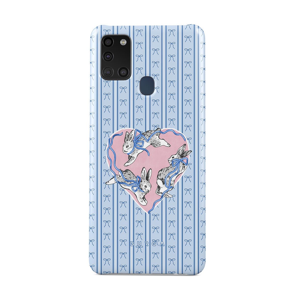 They run, you chase. Or maybe you run, and they chase you. The Follow Me Samsung Galaxy A21s 4G phone case design is an eternal loop—white rabbits tangled in pink ribbons, leading you somewhere unknown. Or maybe, somewhere you’ve already been.