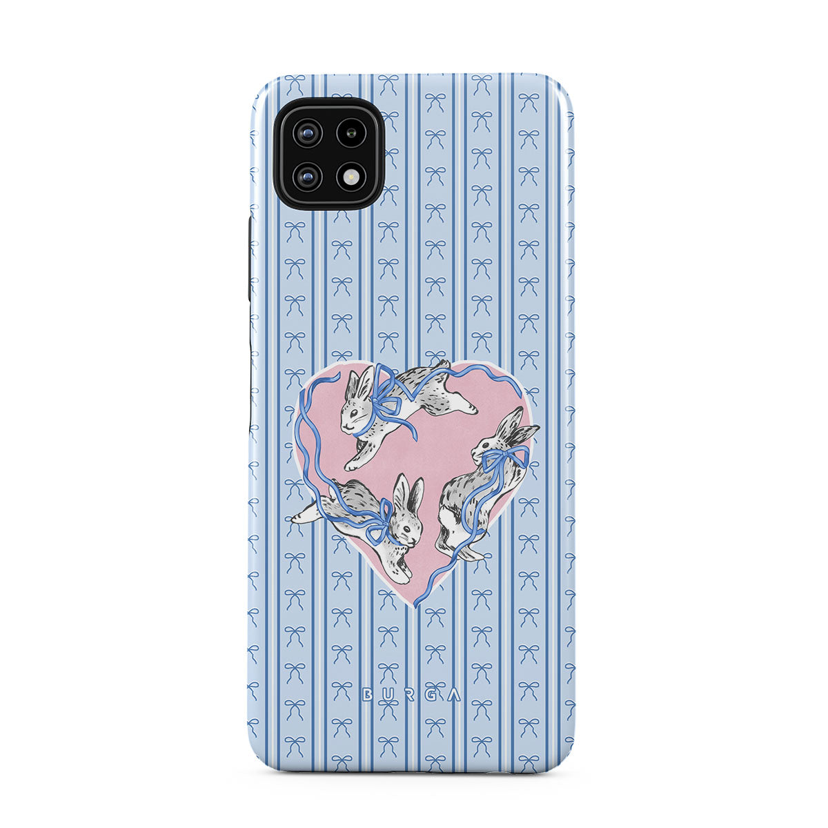 They run, you chase. Or maybe you run, and they chase you. The Follow Me Samsung Galaxy A22 5G phone case design is an eternal loop—white rabbits tangled in pink ribbons, leading you somewhere unknown. Or maybe, somewhere you’ve already been.