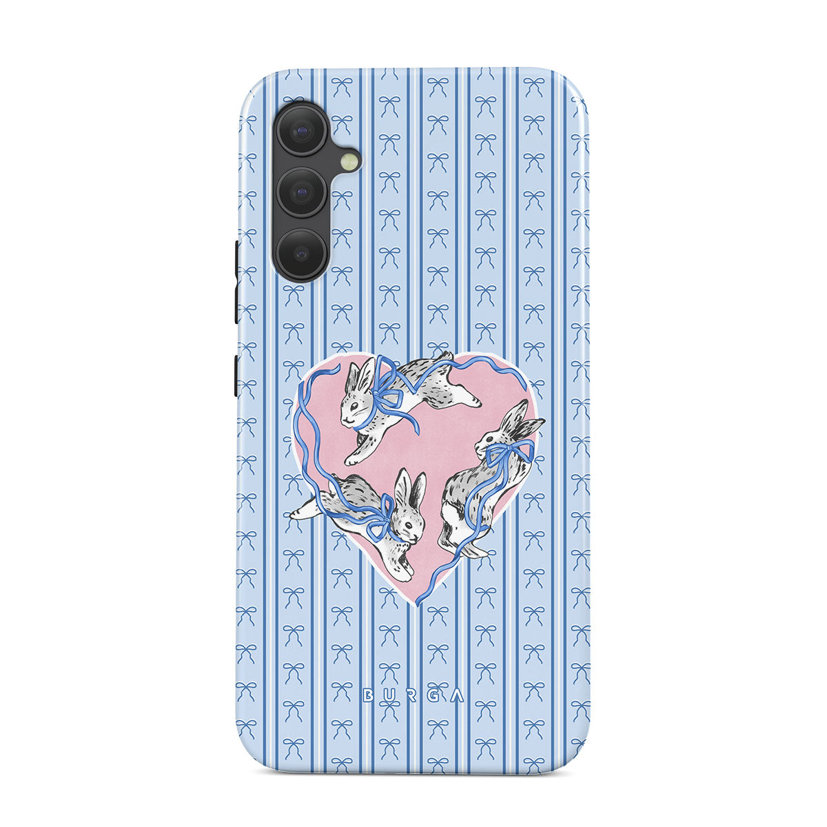 They run, you chase. Or maybe you run, and they chase you. The Follow Me Samsung Galaxy A34 phone case design is an eternal loop—white rabbits tangled in pink ribbons, leading you somewhere unknown. Or maybe, somewhere you’ve already been.
