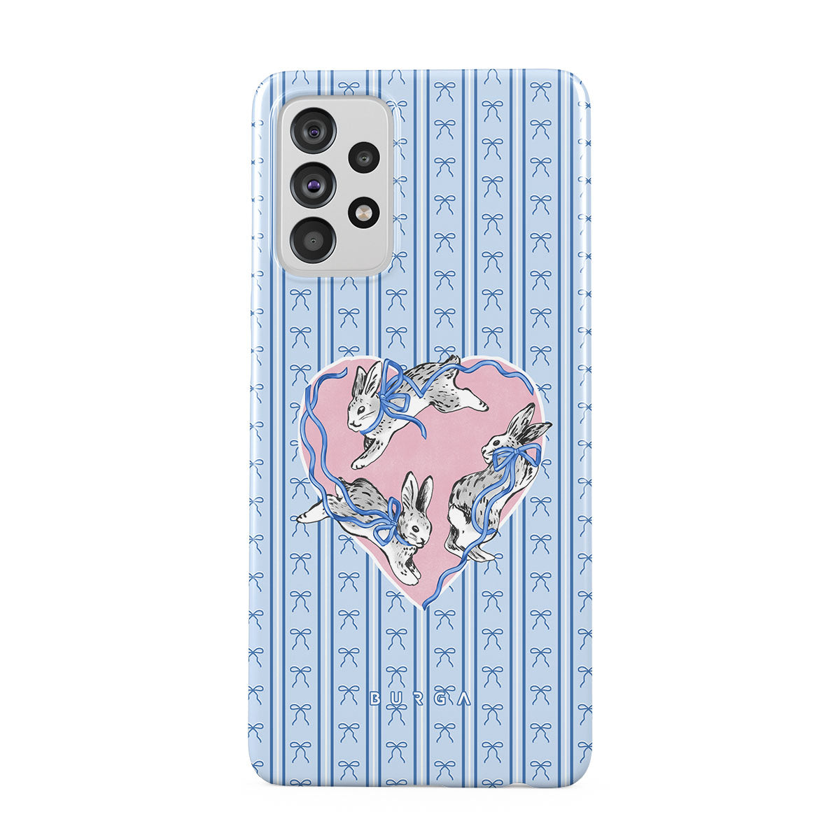 They run, you chase. Or maybe you run, and they chase you. The Follow Me Samsung Galaxy A72 4G / 5G phone case design is an eternal loop—white rabbits tangled in pink ribbons, leading you somewhere unknown. Or maybe, somewhere you’ve already been.