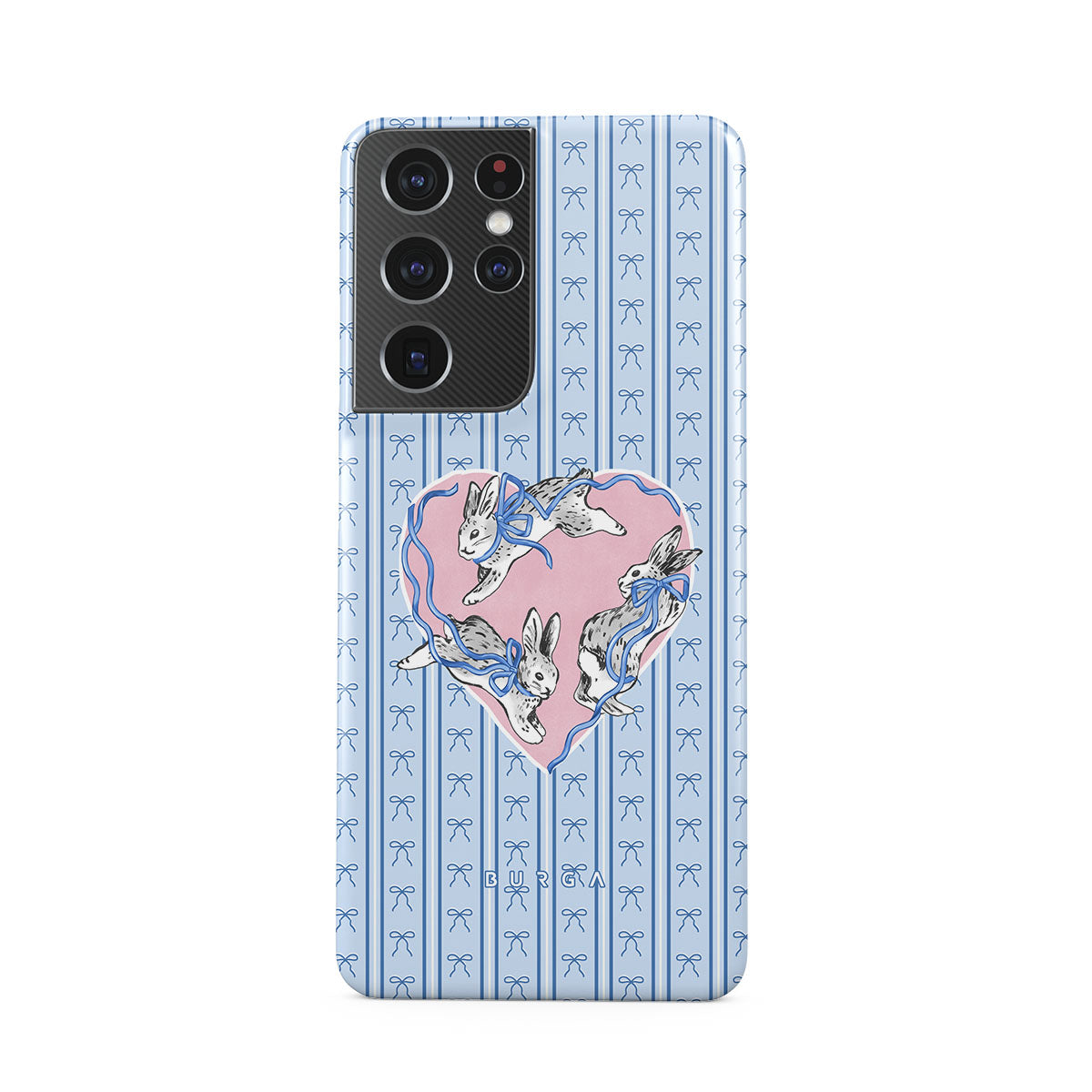 They run, you chase. Or maybe you run, and they chase you. The Follow Me Samsung Galaxy S21 Ultra phone case design is an eternal loop—white rabbits tangled in pink ribbons, leading you somewhere unknown. Or maybe, somewhere you’ve already been.