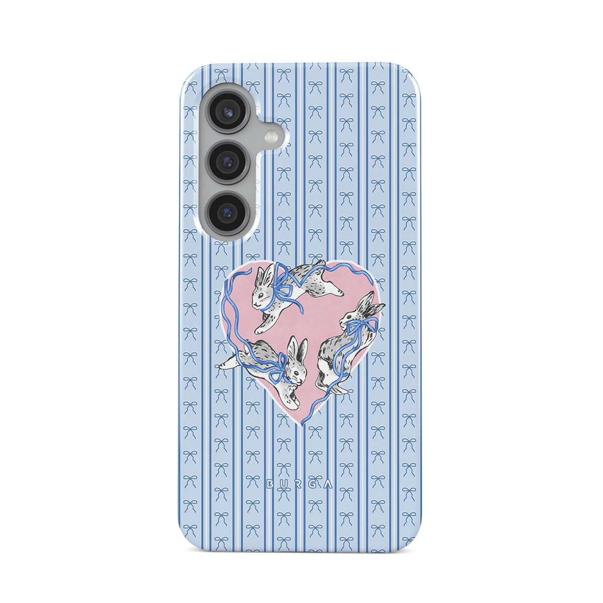 They run, you chase. Or maybe you run, and they chase you. The Follow Me Samsung Galaxy S24 FE phone case design is an eternal loop—white rabbits tangled in pink ribbons, leading you somewhere unknown. Or maybe, somewhere you’ve already been.