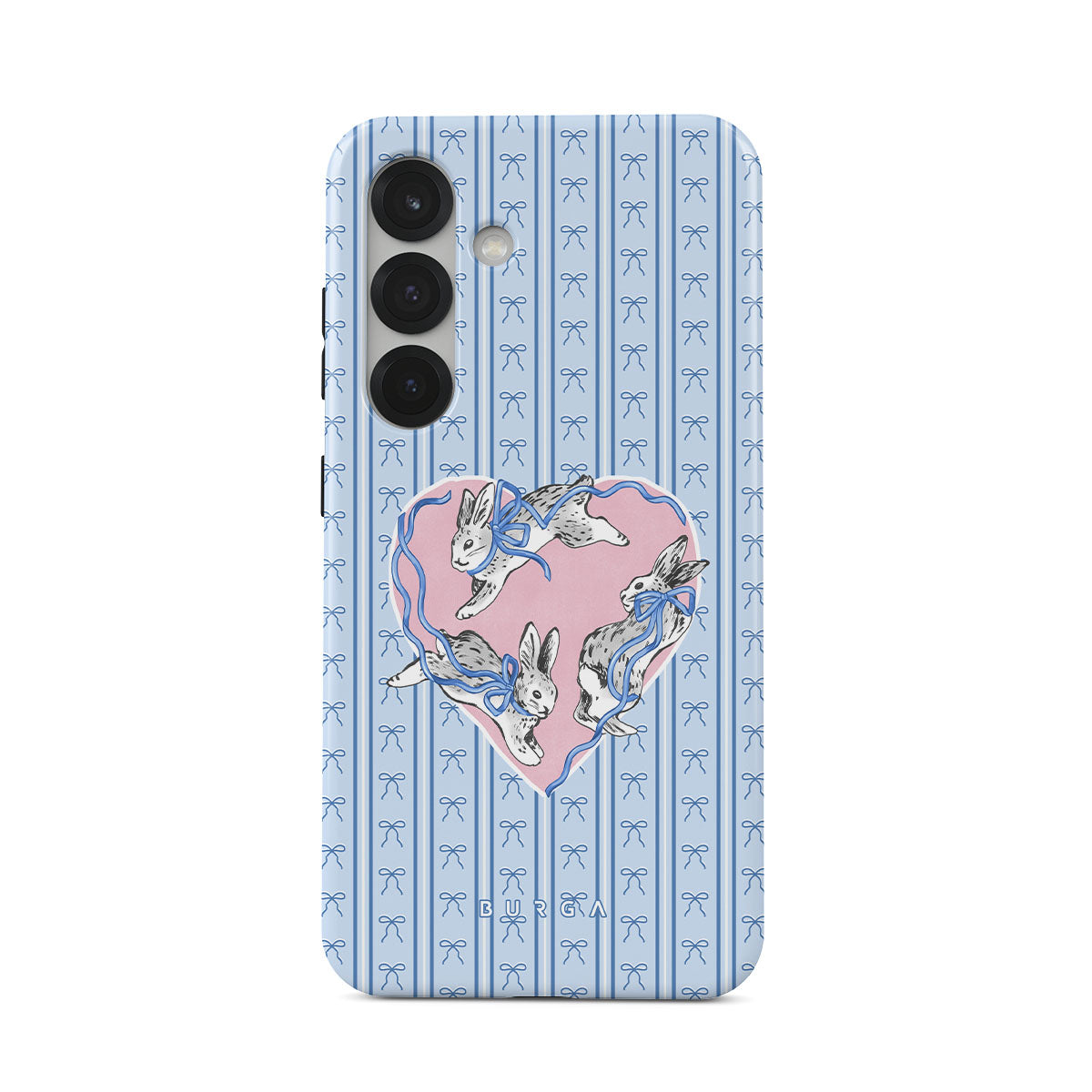 They run, you chase. Or maybe you run, and they chase you. The Follow Me Samsung Galaxy S25 phone case design is an eternal loop—white rabbits tangled in pink ribbons, leading you somewhere unknown. Or maybe, somewhere you’ve already been.