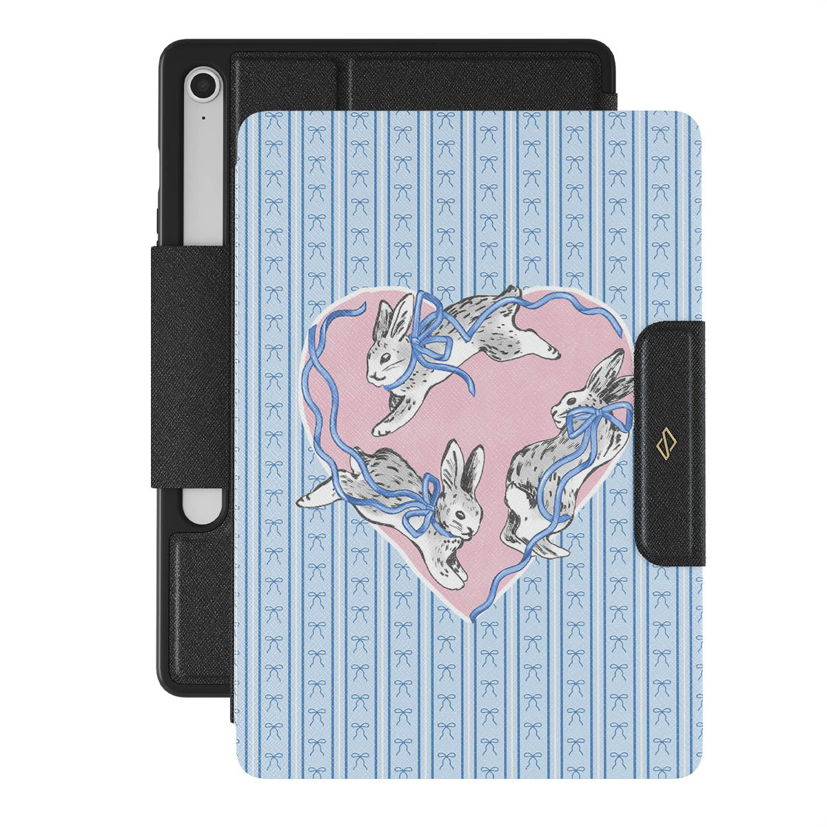 They run, you chase. Or maybe you run, and they chase you. The Follow Me Samsung Galaxy Tab S10 FE folio case design is an eternal loop—white rabbits tangled in pink ribbons, leading you somewhere unknown. Or maybe, somewhere you’ve already been.
