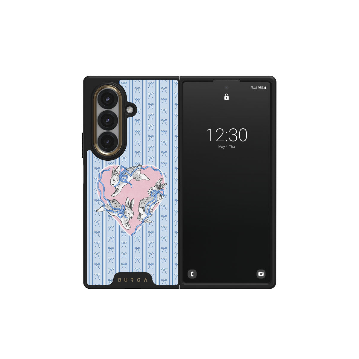 They run, you chase. Or maybe you run, and they chase you. The Follow Me Samsung Galaxy Z Fold 7 phone case design is an eternal loop—white rabbits tangled in pink ribbons, leading you somewhere unknown. Or maybe, somewhere you’ve already been.