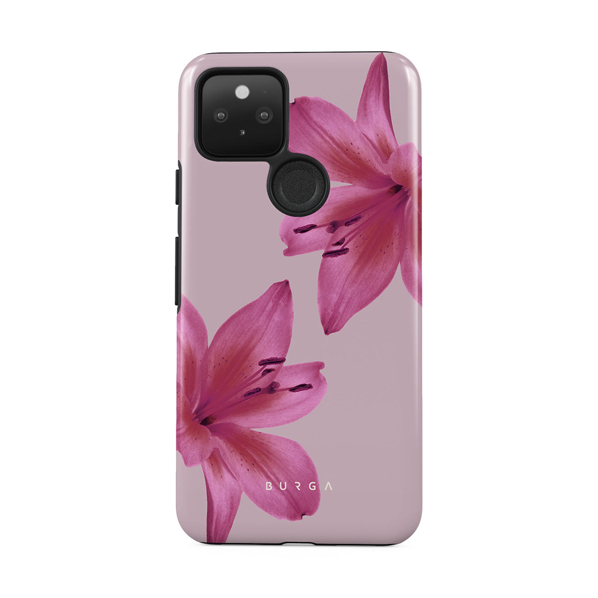 A gentle hush of pink forms where soft lilies sway. Their tender petals — a silent ode to the delicate dance of life. The Fragile Beauty Google Pixel 5 phone case design invites you to lean into the soft embrace of nature, letting its subtle rhythms guide your journey.