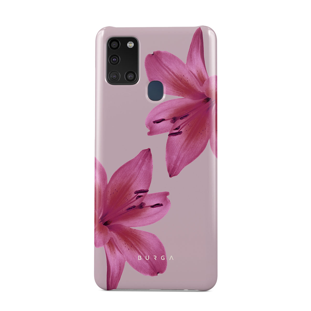 A gentle hush of pink forms where soft lilies sway. Their tender petals — a silent ode to the delicate dance of life. The Fragile Beauty Samsung Galaxy A21s 4G phone case design invites you to lean into the soft embrace of nature, letting its subtle rhythms guide your journey.