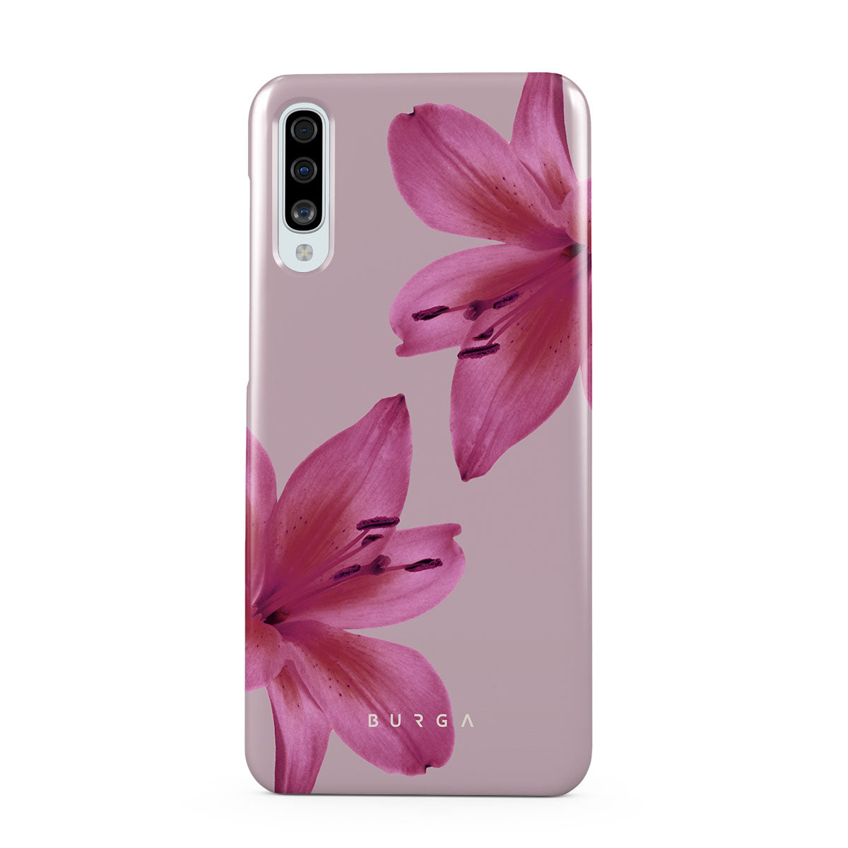 A gentle hush of pink forms where soft lilies sway. Their tender petals — a silent ode to the delicate dance of life. The Fragile Beauty Samsung Galaxy A50 phone case design invites you to lean into the soft embrace of nature, letting its subtle rhythms guide your journey.