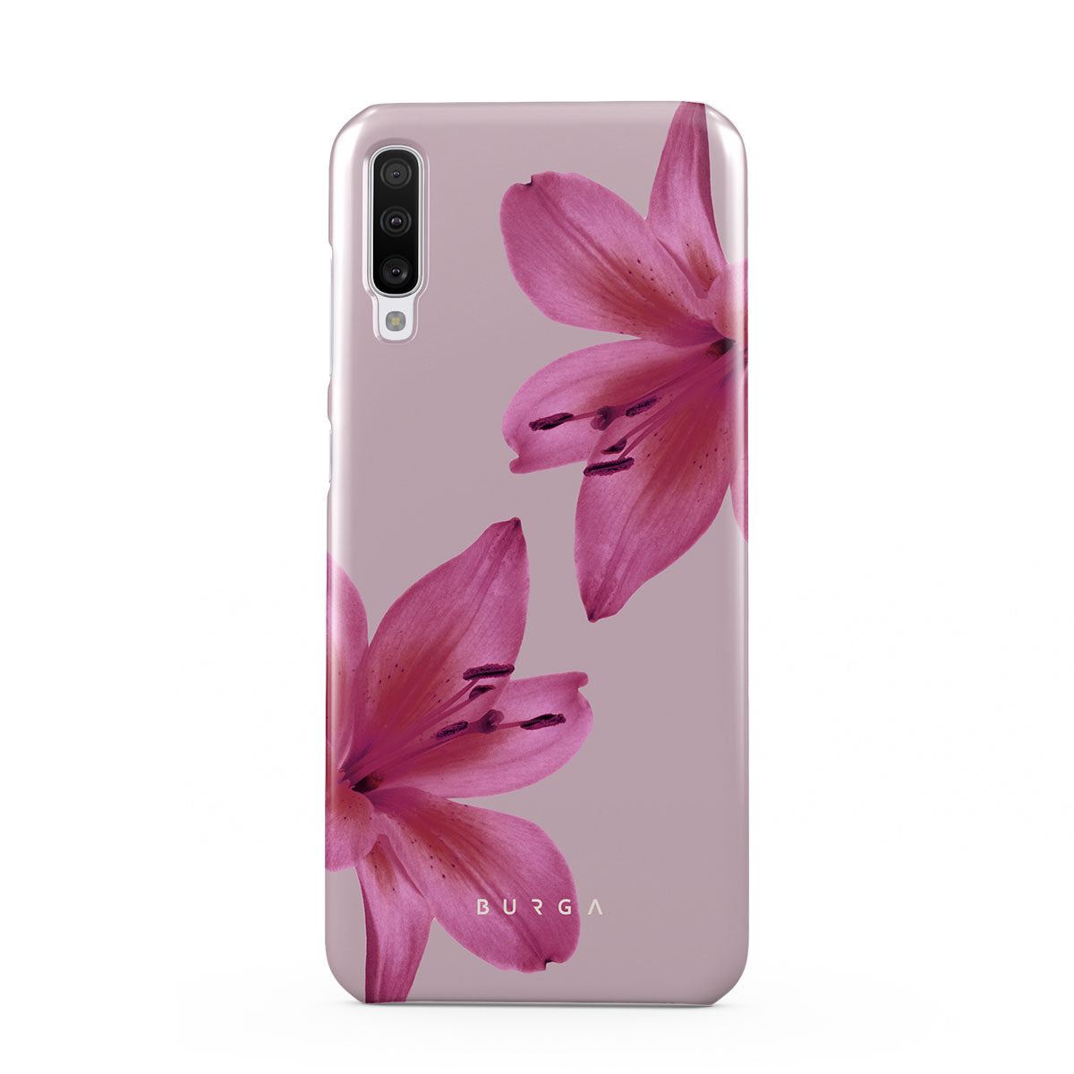 A gentle hush of pink forms where soft lilies sway. Their tender petals — a silent ode to the delicate dance of life. The Fragile Beauty Samsung Galaxy A70 phone case design invites you to lean into the soft embrace of nature, letting its subtle rhythms guide your journey.