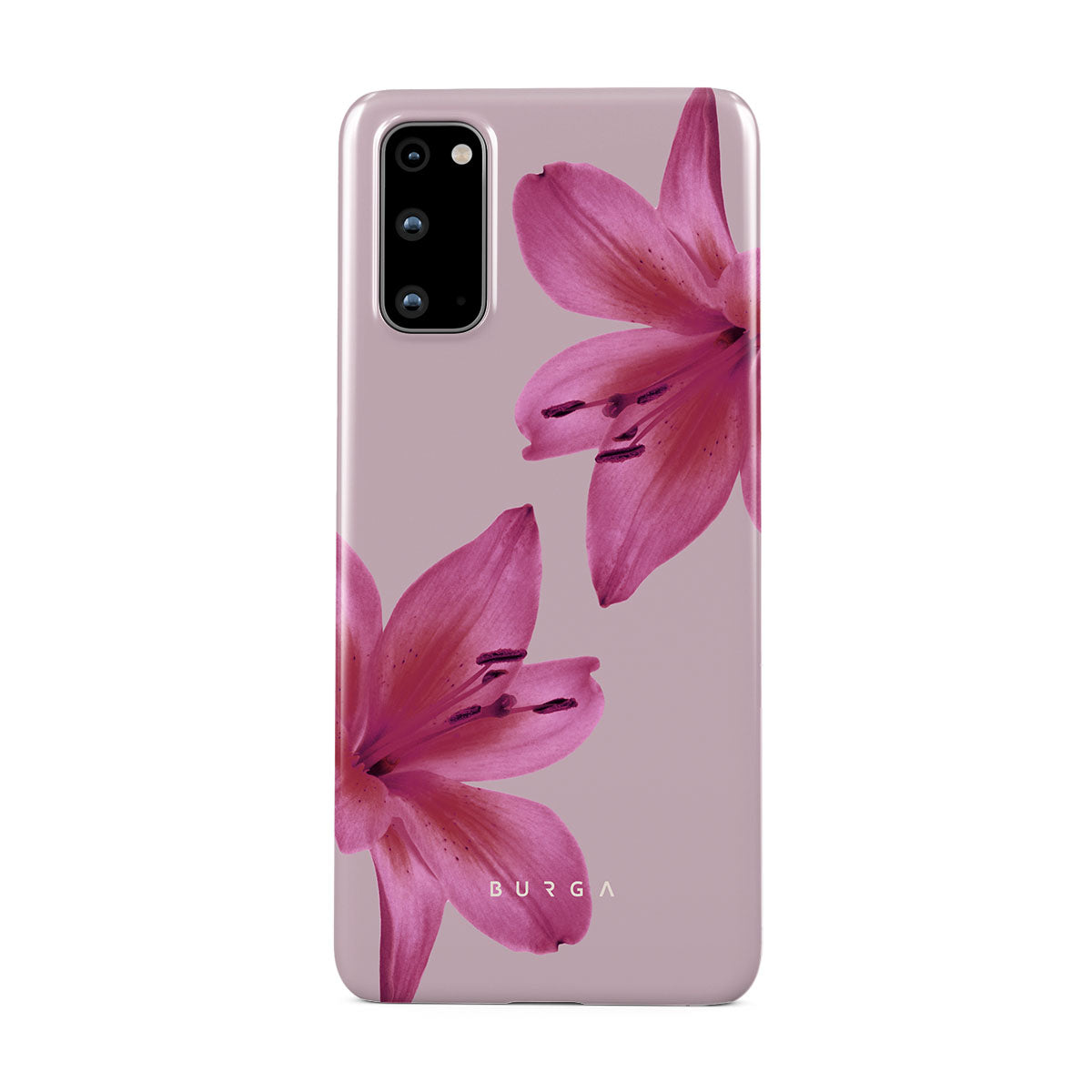 A gentle hush of pink forms where soft lilies sway. Their tender petals — a silent ode to the delicate dance of life. The Fragile Beauty Samsung Galaxy S20 4G / 5G phone case design invites you to lean into the soft embrace of nature, letting its subtle rhythms guide your journey.