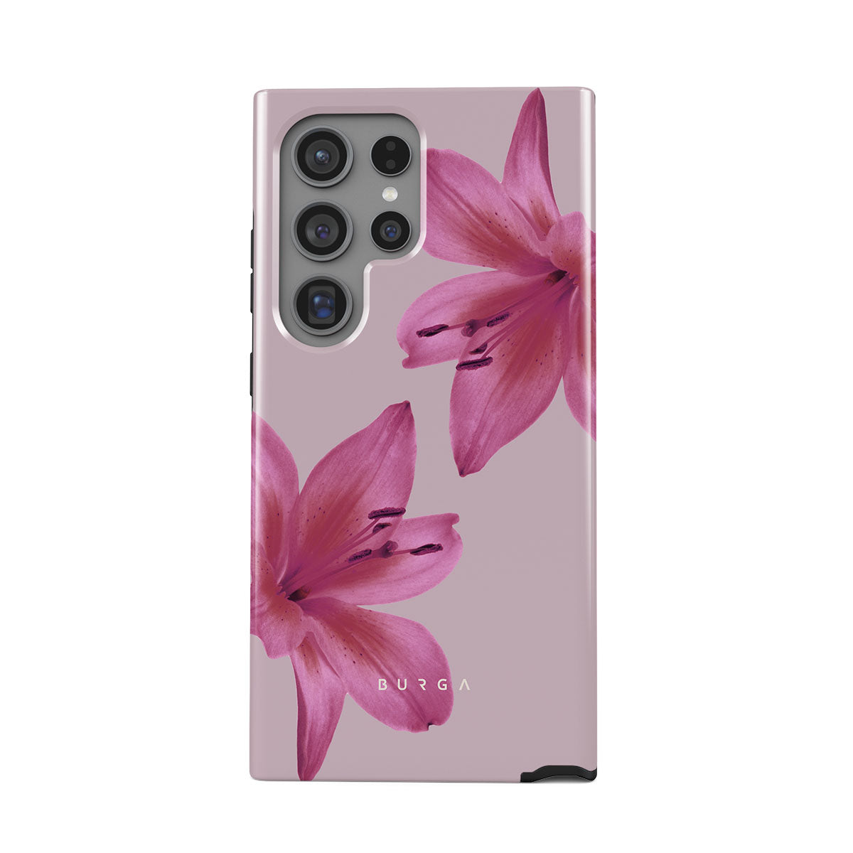 A gentle hush of pink forms where soft lilies sway. Their tender petals — a silent ode to the delicate dance of life. The Fragile Beauty Samsung Galaxy S24 Ultra phone case design invites you to lean into the soft embrace of nature, letting its subtle rhythms guide your journey.