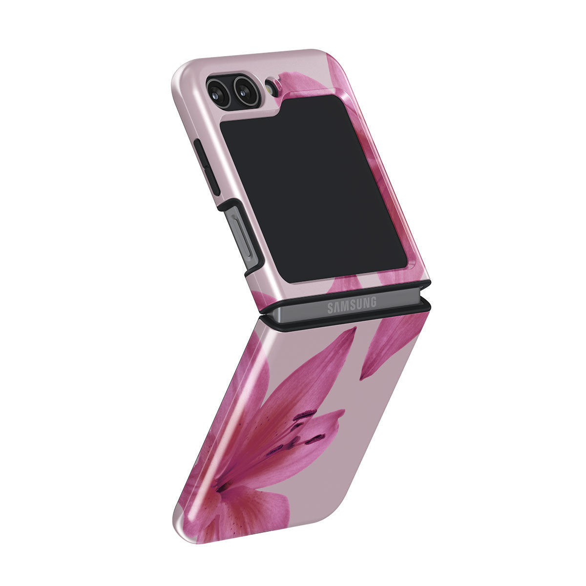 A gentle hush of pink forms where soft lilies sway. Their tender petals — a silent ode to the delicate dance of life. The Fragile Beauty Samsung Galaxy Z Flip 5 phone case design invites you to lean into the soft embrace of nature, letting its subtle rhythms guide your journey.