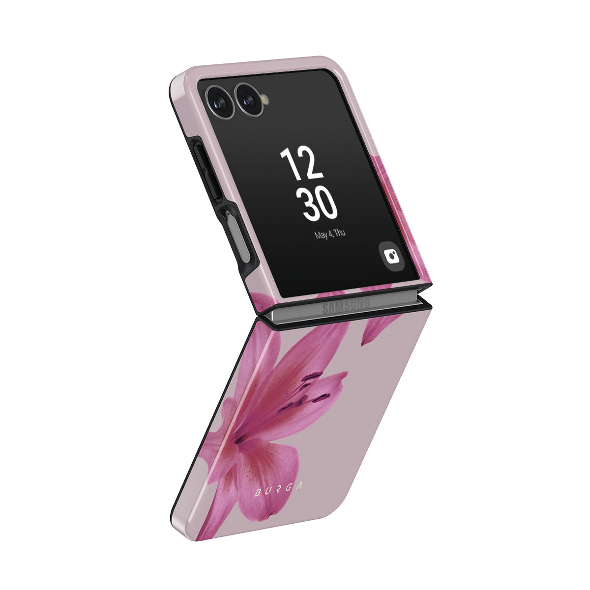 A gentle hush of pink forms where soft lilies sway. Their tender petals — a silent ode to the delicate dance of life. The Fragile Beauty Samsung Galaxy Z Flip 7 phone case design invites you to lean into the soft embrace of nature, letting its subtle rhythms guide your journey.