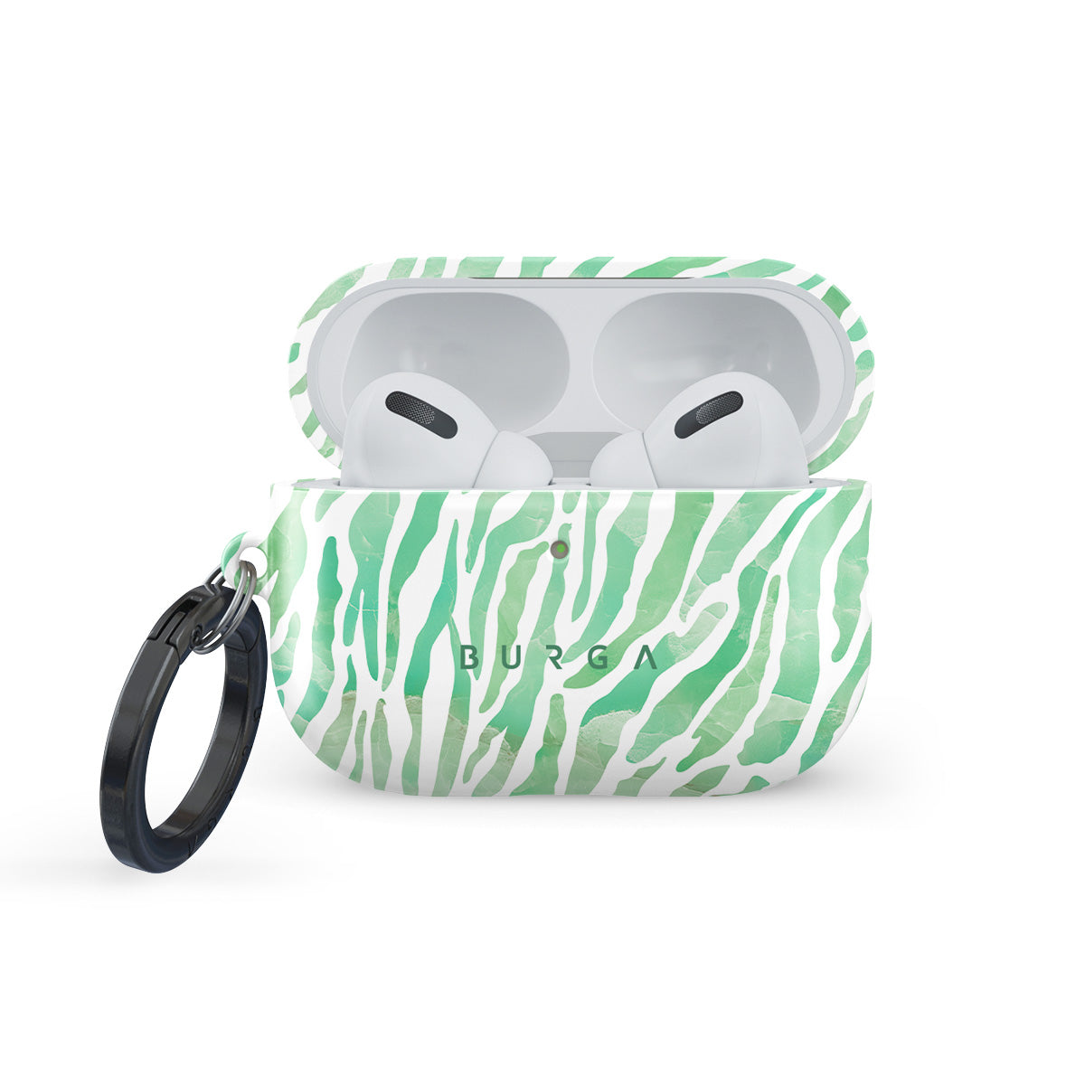 The Free Spirit Apple AirPods Pro 3 case cover combines an exotic zebra pattern with a fresh scheme of green color. Protect your AirPods Pro 3 and make them a trendy part of your style. Fashion can be functional too! Our case fits perfectly snug around Apple AirPods Pro 3 . “Like a glove!” one might say. And it won’t disrupt the wireless charging capabilities of the newer model. There’s even an LED light indicator to prove it (don’t worry, wired charging still works, too). When fitted, the BURGA case will protect the delicate Apple AirPods Pro 3 case beneath it from scratches, bumps, and drops while remaining scratch-free itself. Our signature design pattern prints are High Quality, and will never peel or fade away- thanks to our unique printing technology. And finally, a handy carabiner is there to make your life easier and more convenient: just snap it around your keys or belt loop and tackle the day head-on. Your music is right there by your side when you need it.