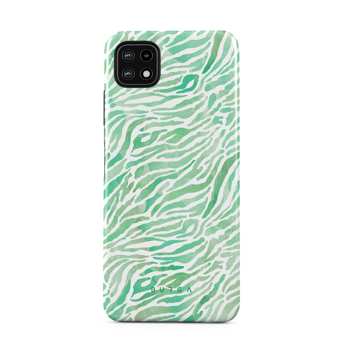 Our Free Spirit Samsung Galaxy A22 5G phone case features an exotic zebra pattern in varying shades of green. Keep your spirits up, as there is no need to worry about your phone, as this trendy case is not only pretty but offers the heavy-duty protection that your cellphone requires.