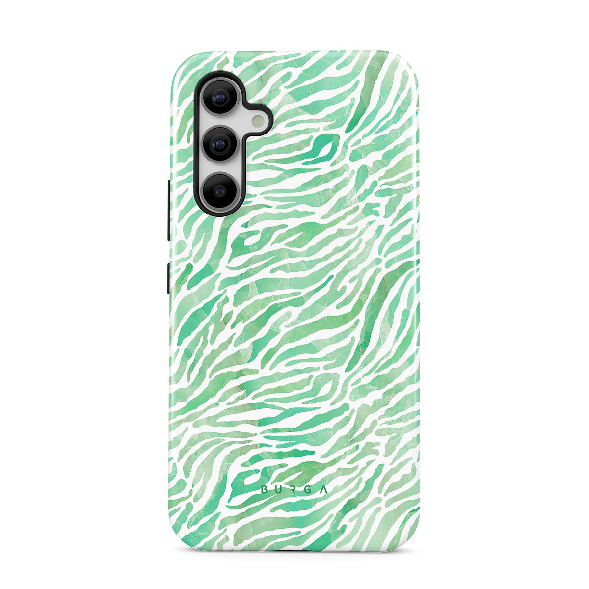 Our Free Spirit Samsung Galaxy A51 phone case features an exotic zebra pattern in varying shades of green. Keep your spirits up, as there is no need to worry about your phone, as this trendy case is not only pretty but offers the heavy-duty protection that your cellphone requires.