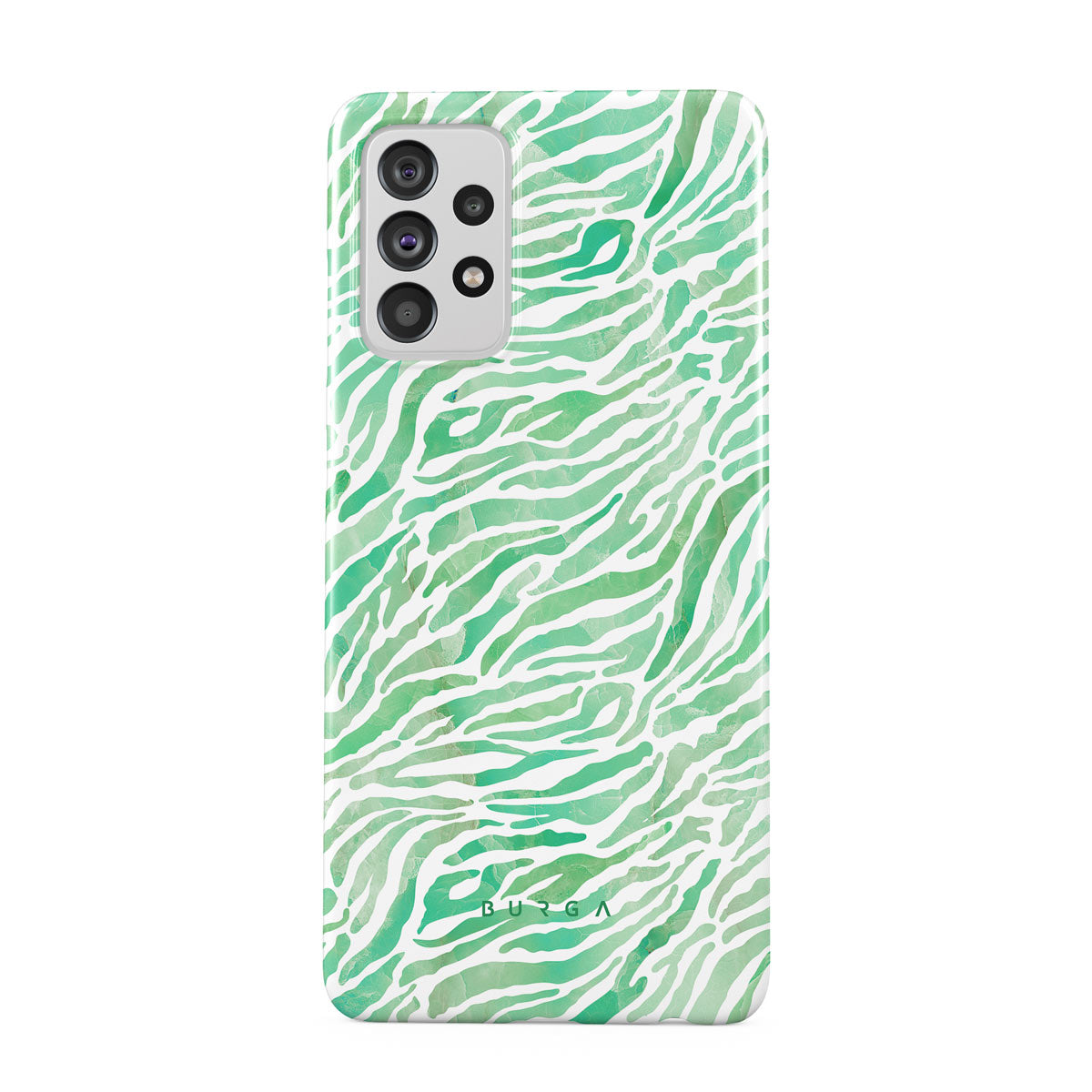 Our Free Spirit Samsung Galaxy A72 phone case features an exotic zebra pattern in varying shades of green. Keep your spirits up, as there is no need to worry about your phone, as this trendy case is not only pretty but offers the heavy-duty protection that your cellphone requires.