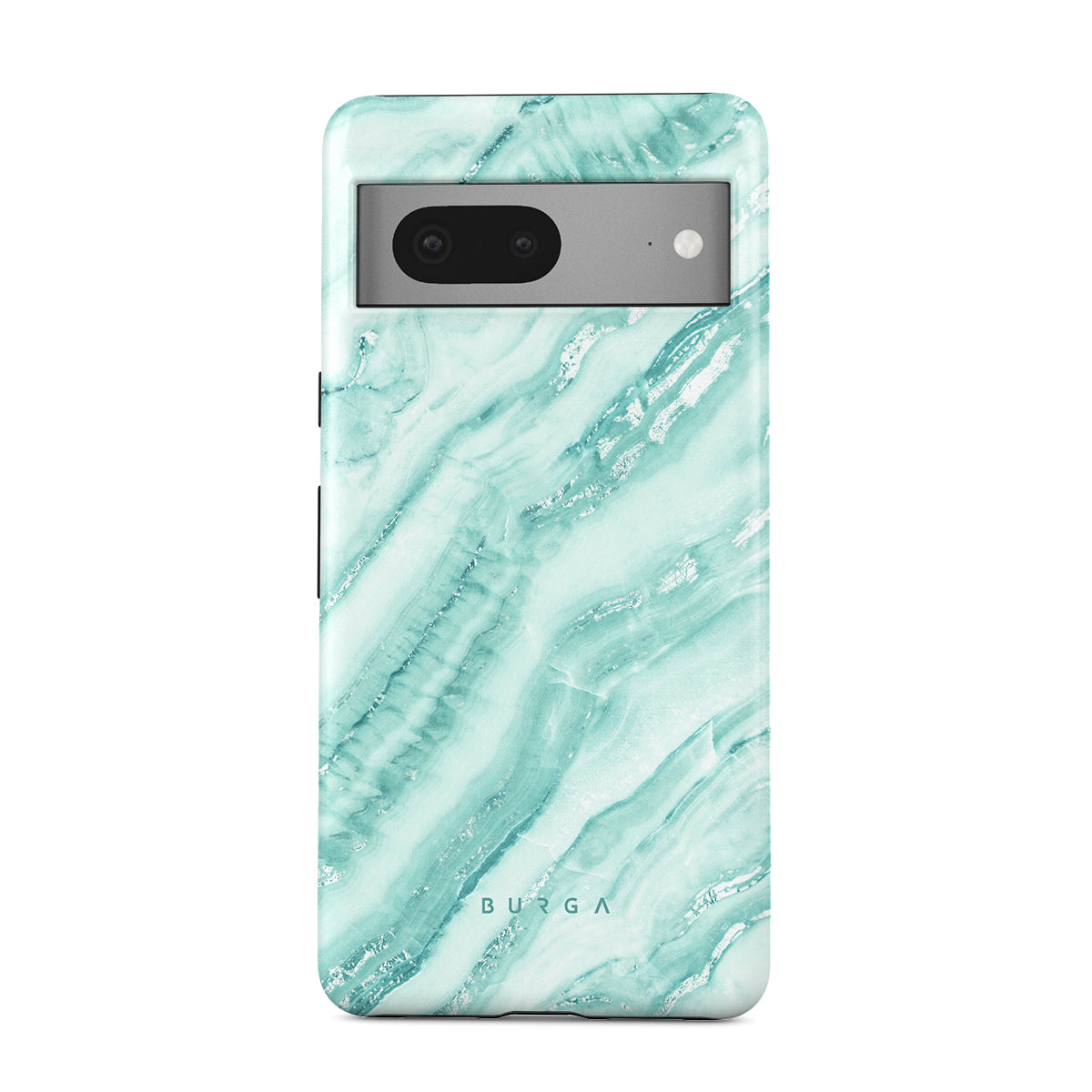 Add freshness to your style with our Fresh Breeze Google Pixel 7a phone case. The soft cyan color of the case is emphasized in a unique marble pattern. Do not let the softness of the color deceive you; the case still offers heavy-duty protection for your cellphone.