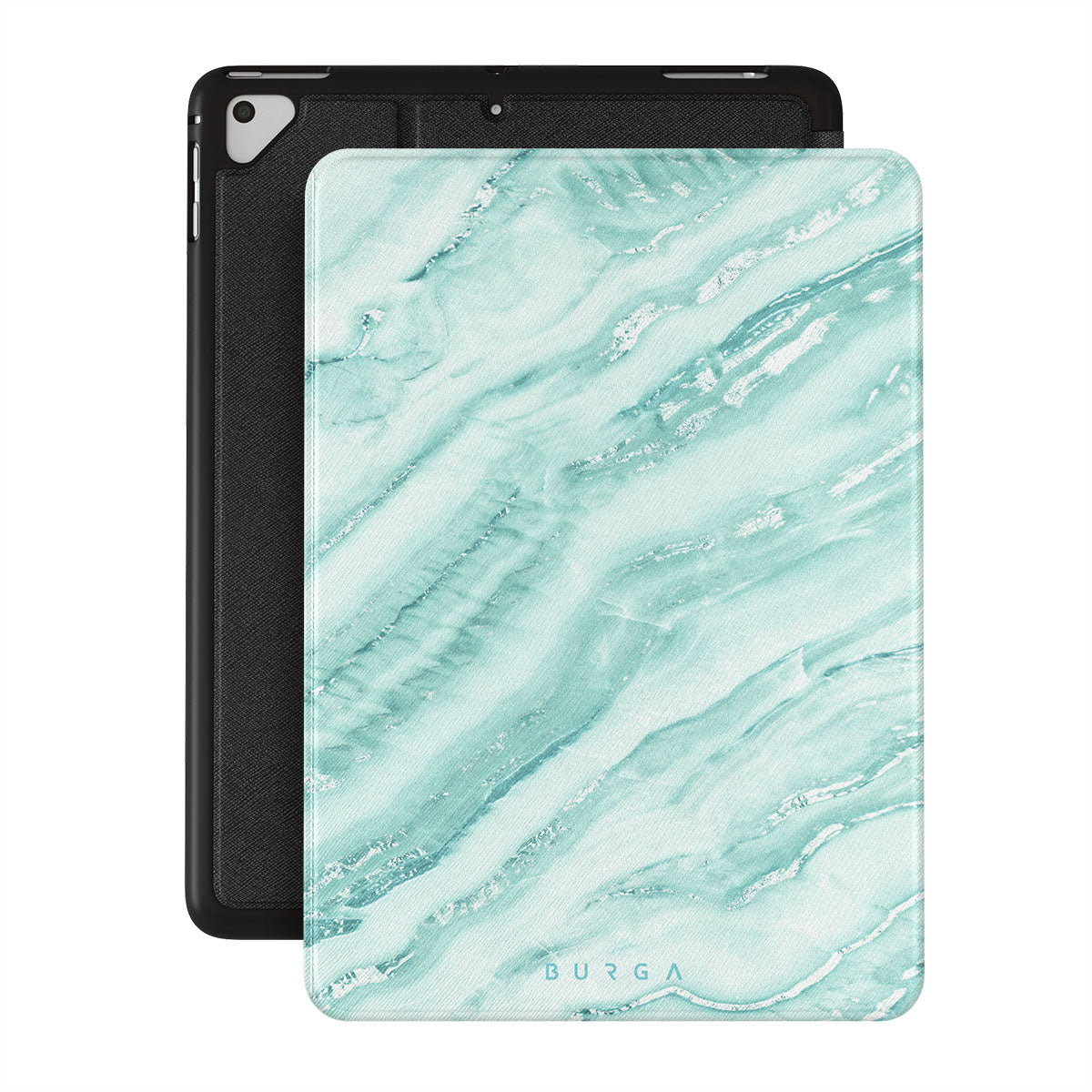 Add freshness to your style with our Fresh Breeze iPad 9.7 (6th/5th Gen) folio case. The soft cyan color of the case is emphasized in a unique marble pattern. Do not let the softness of the color deceive you; the case still offers heavy-duty protection for your celliPad.